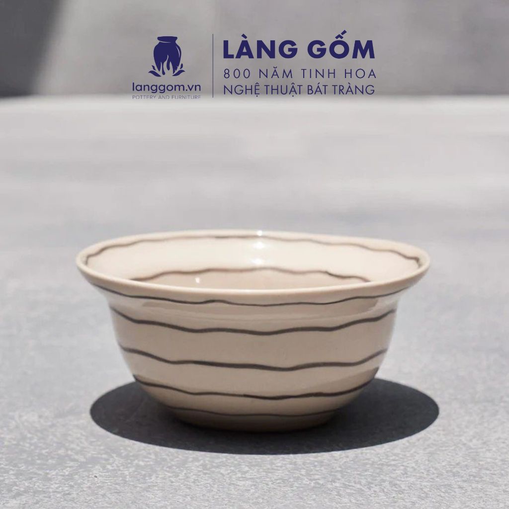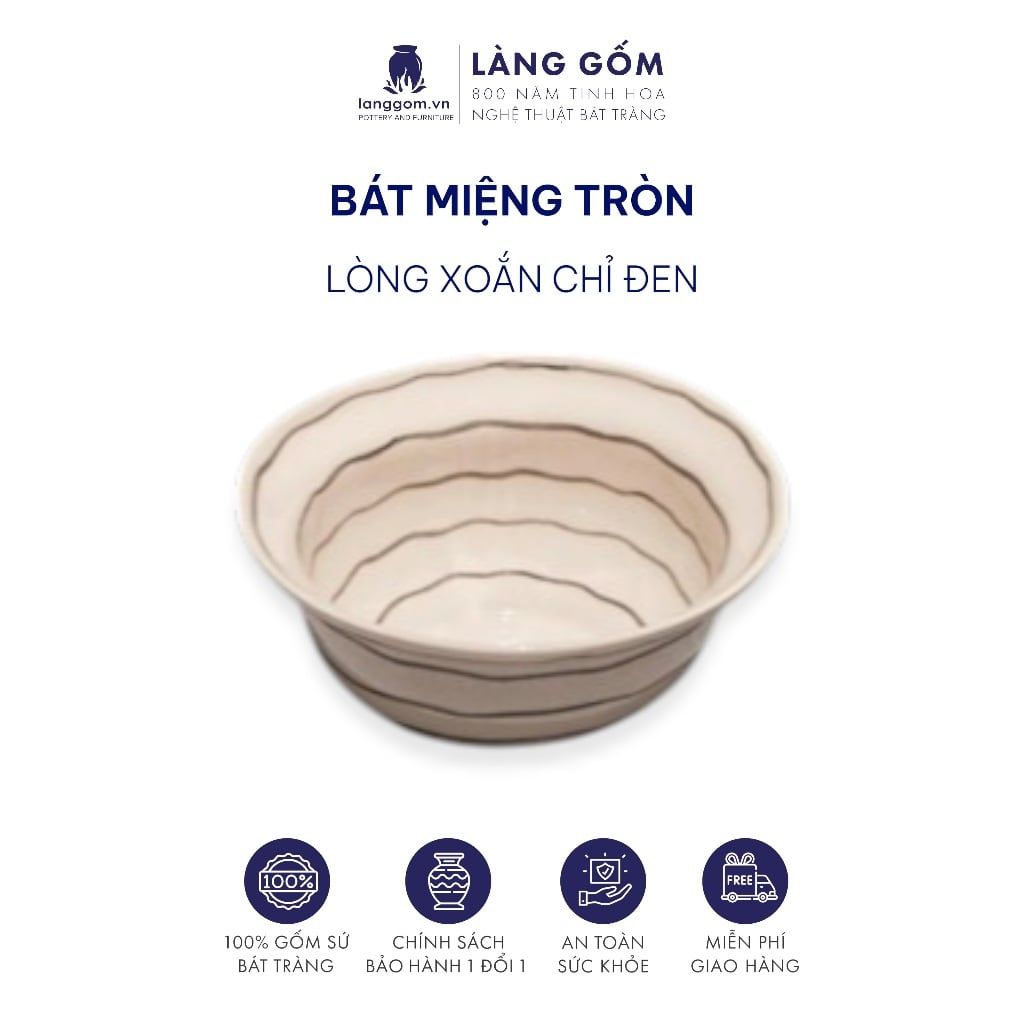 Bát ăn cơm, chén gia vị miệng tròn hoa văn lòng xoắn chỉ đen