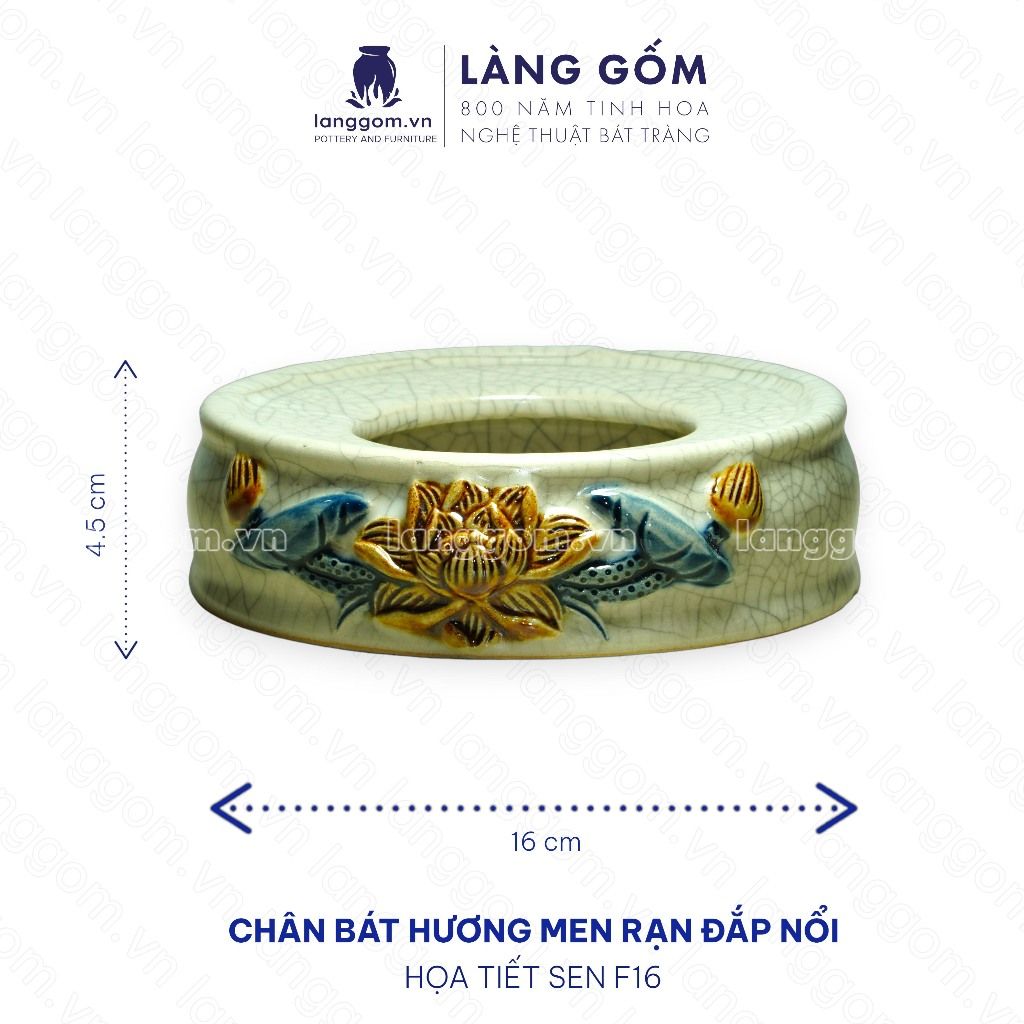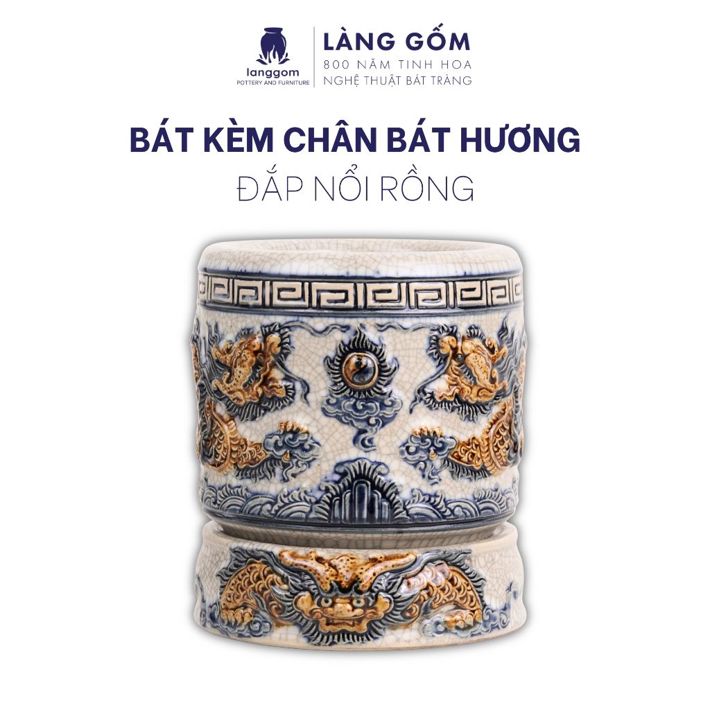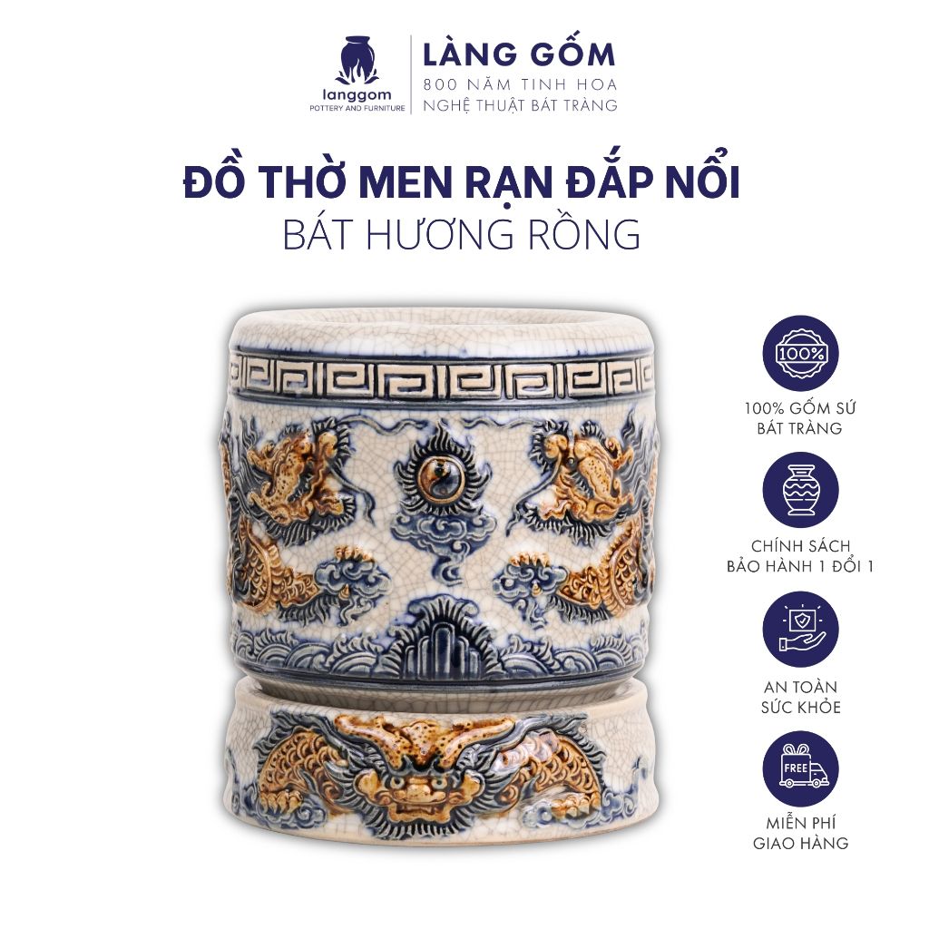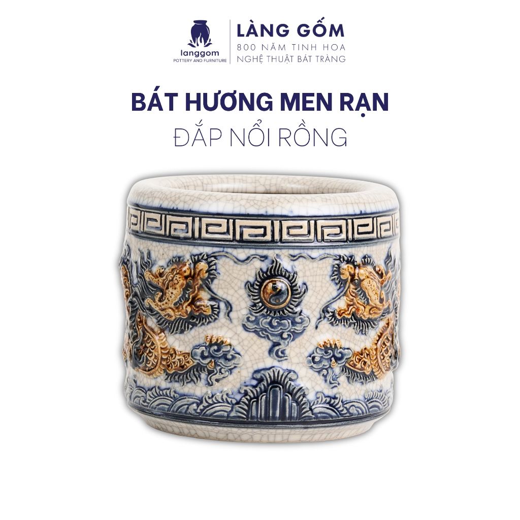 Bát hương men rạn đắp nổi họa tiết hoa rồng