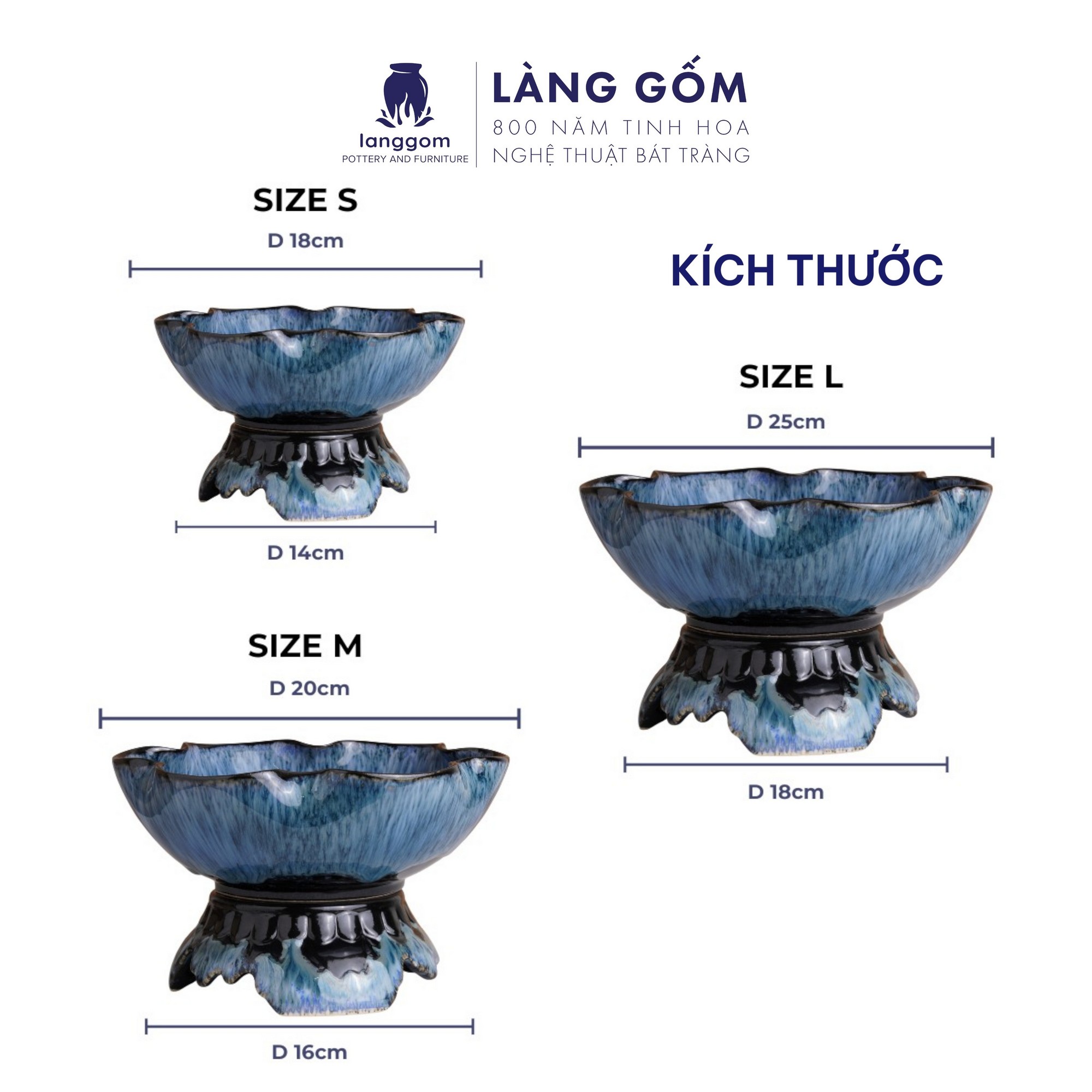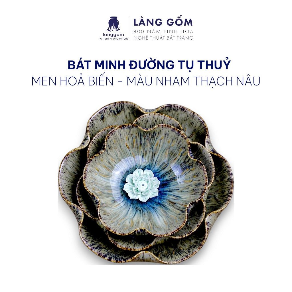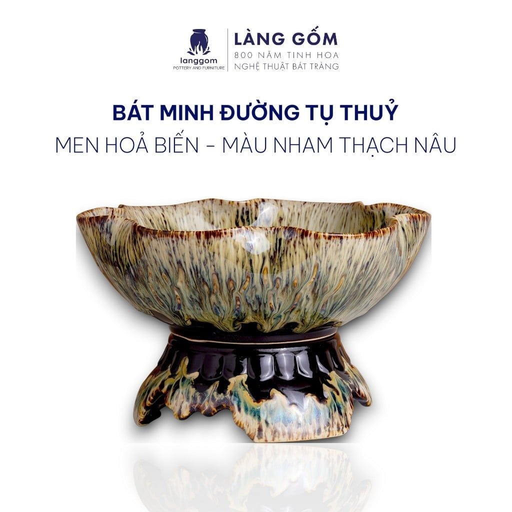 Bát minh đường tụ thủy, bát thả hoa cúng Phật, men hỏa biến phong thủy cao cấp