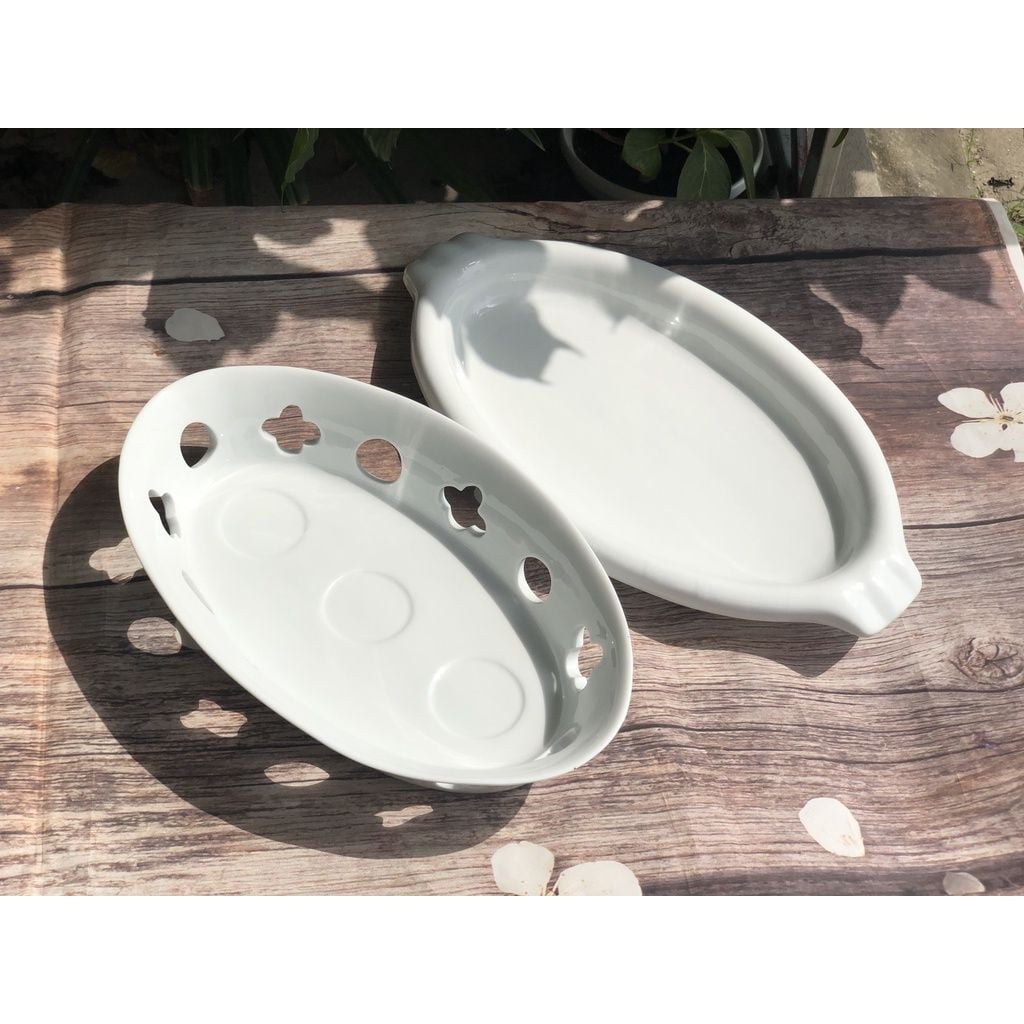 Bếp cồn sứ trắng hình cá đun nóng thức ăn bằng cồn nến