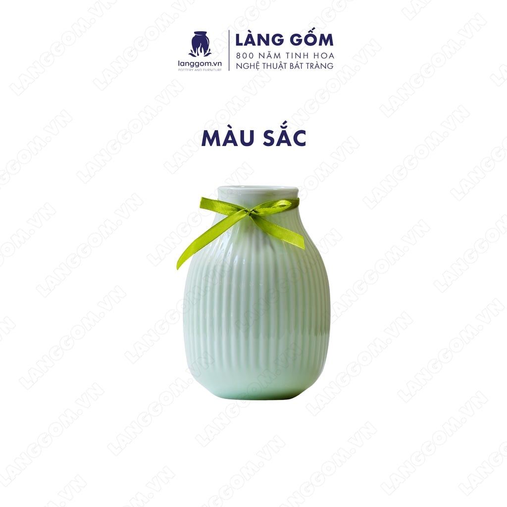 Bình hoa men ngọc dáng bầu khía