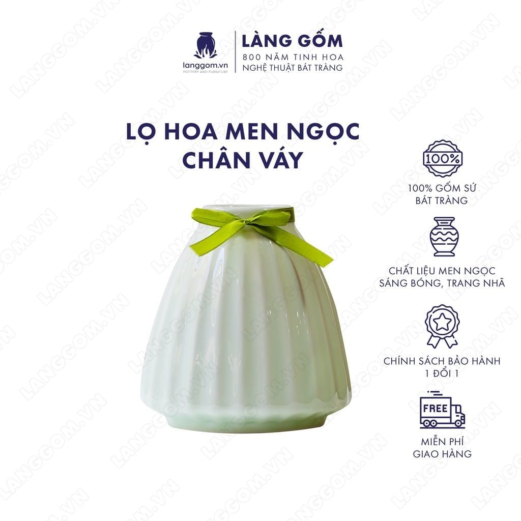 Bình hoa men ngọc dáng chân váy khía