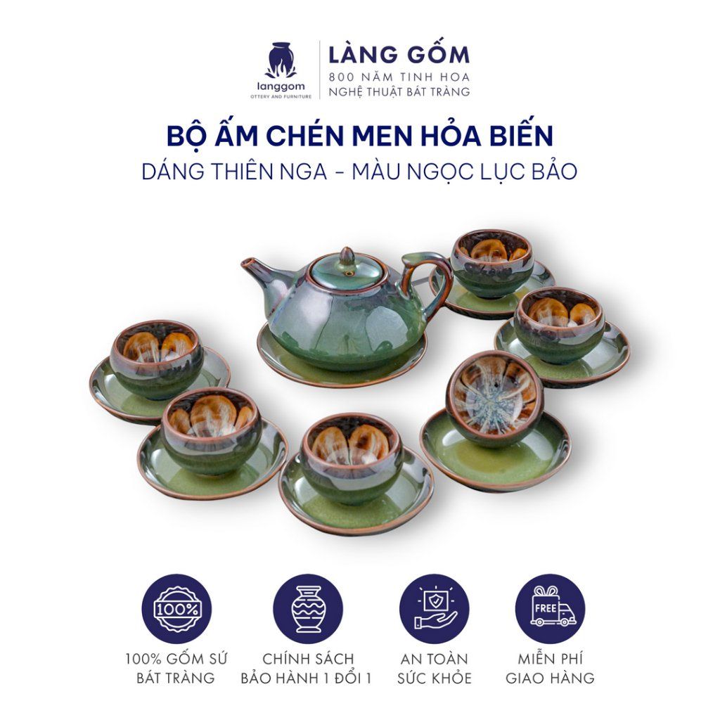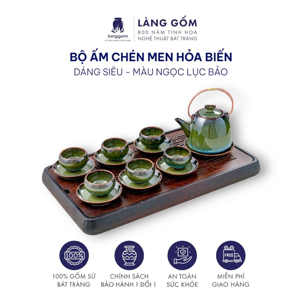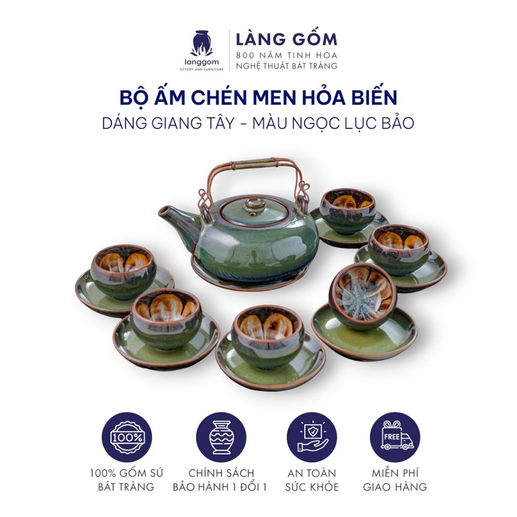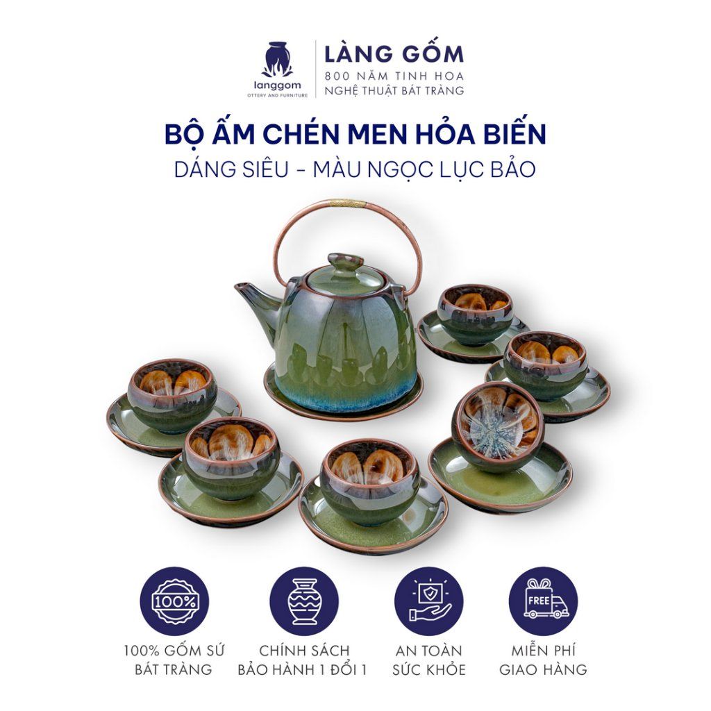 Bộ ấm chén uống trà men hỏa biến lục bảo (TH)