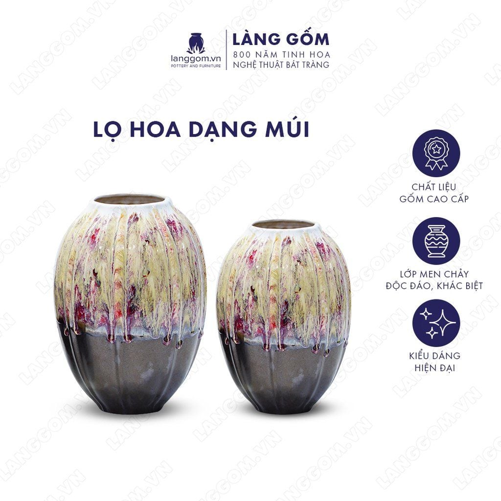 Bình hoa men chảy dạng múi