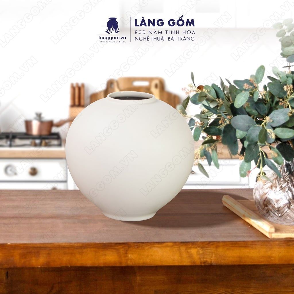Bình hoa men mát dáng quả bóng tròn có chân