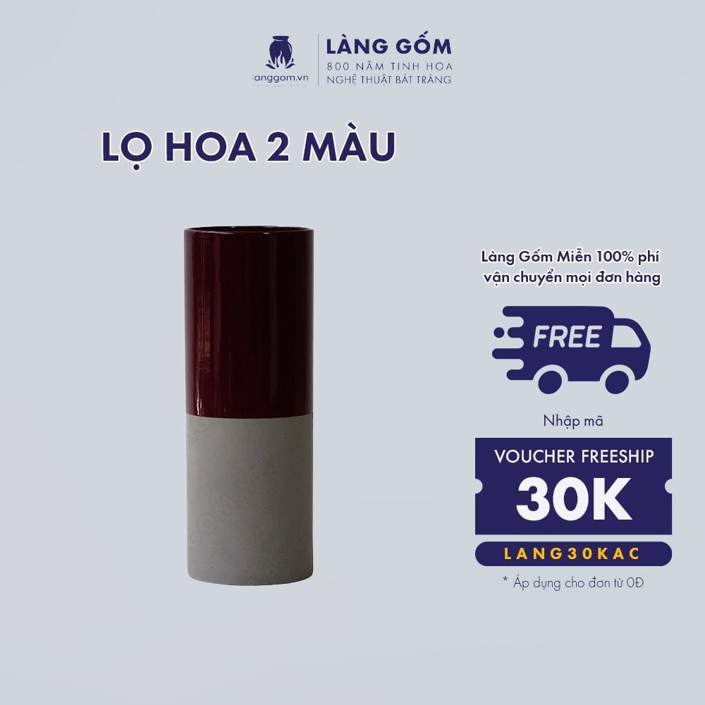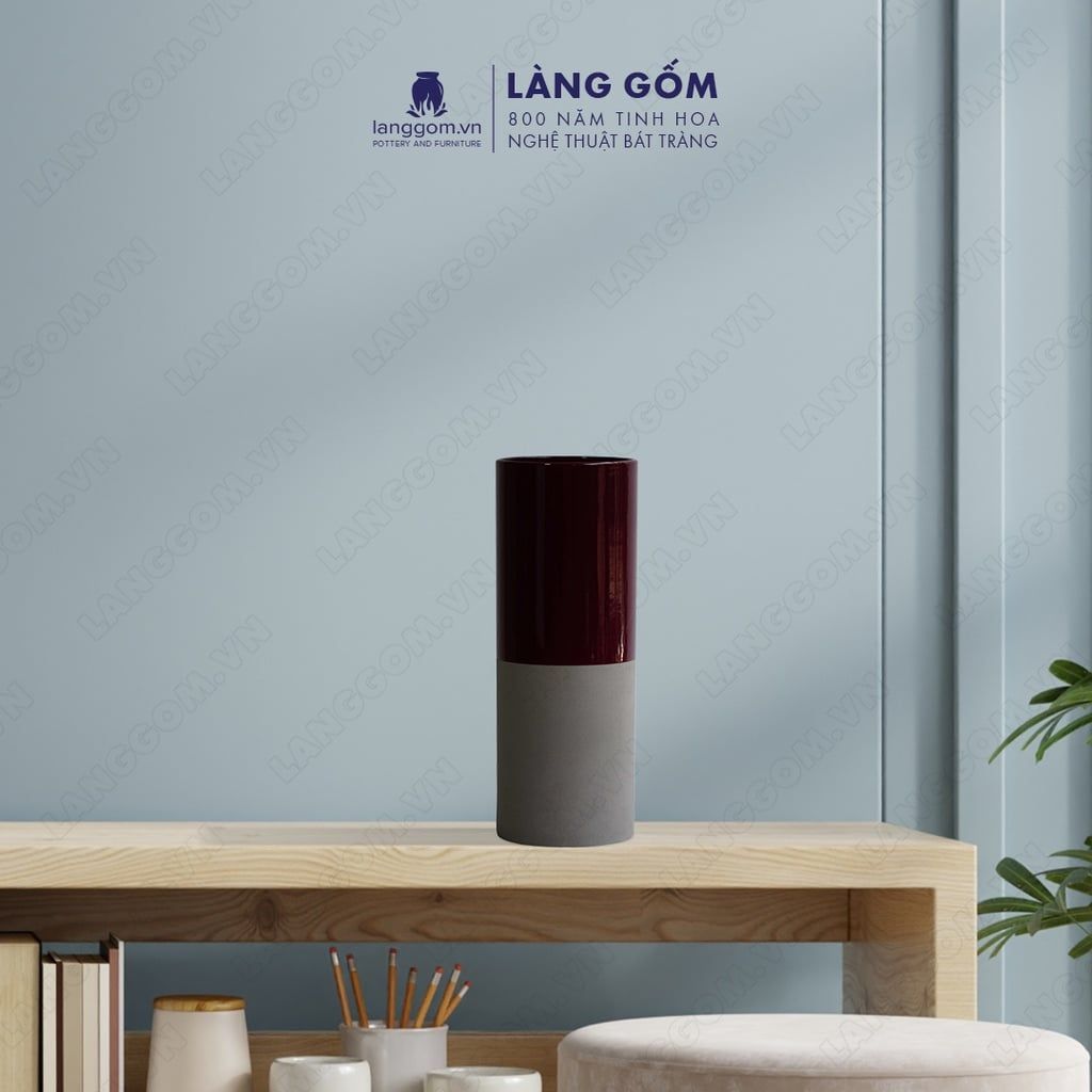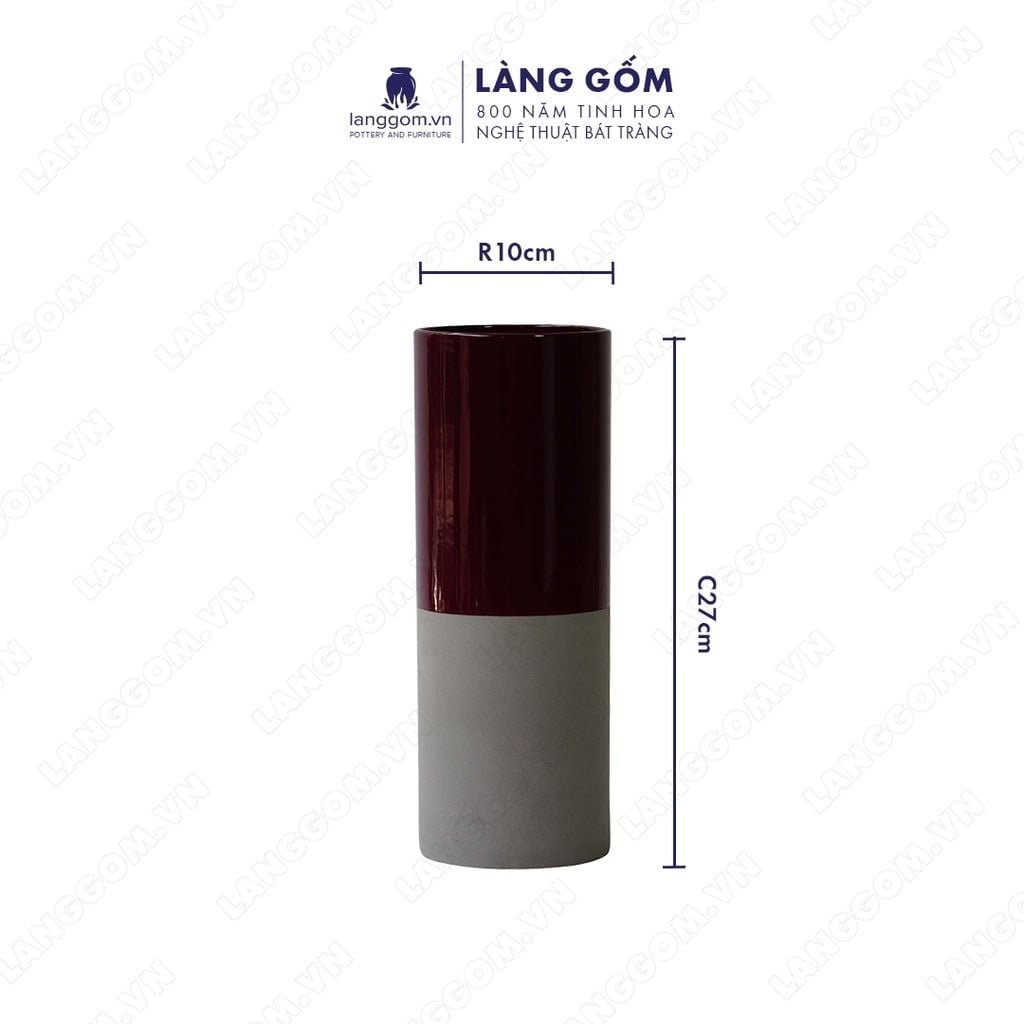 Bình hoa men mát mix 2 màu đỏ - xám
