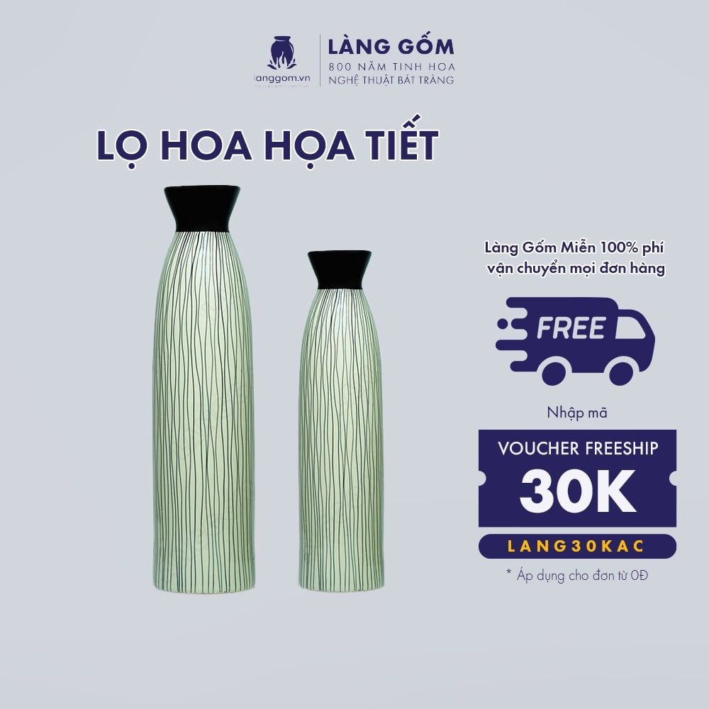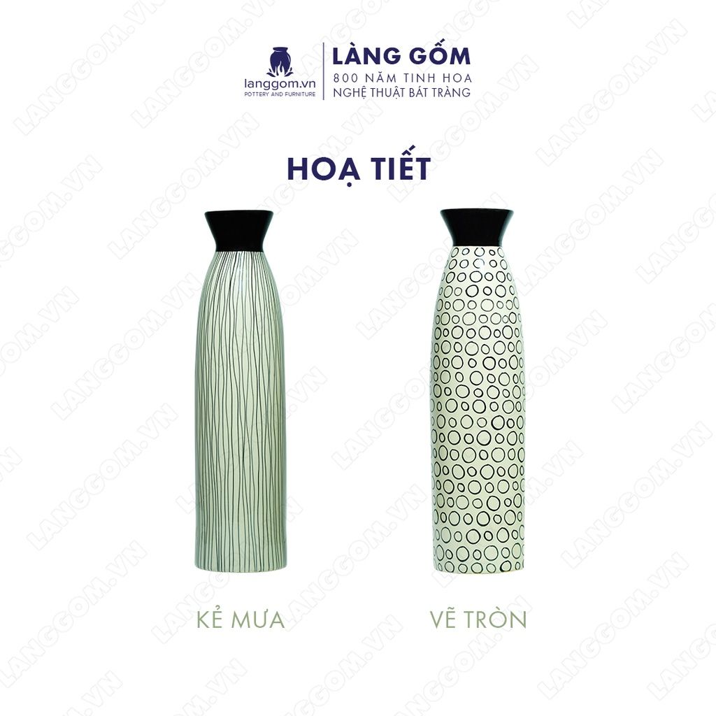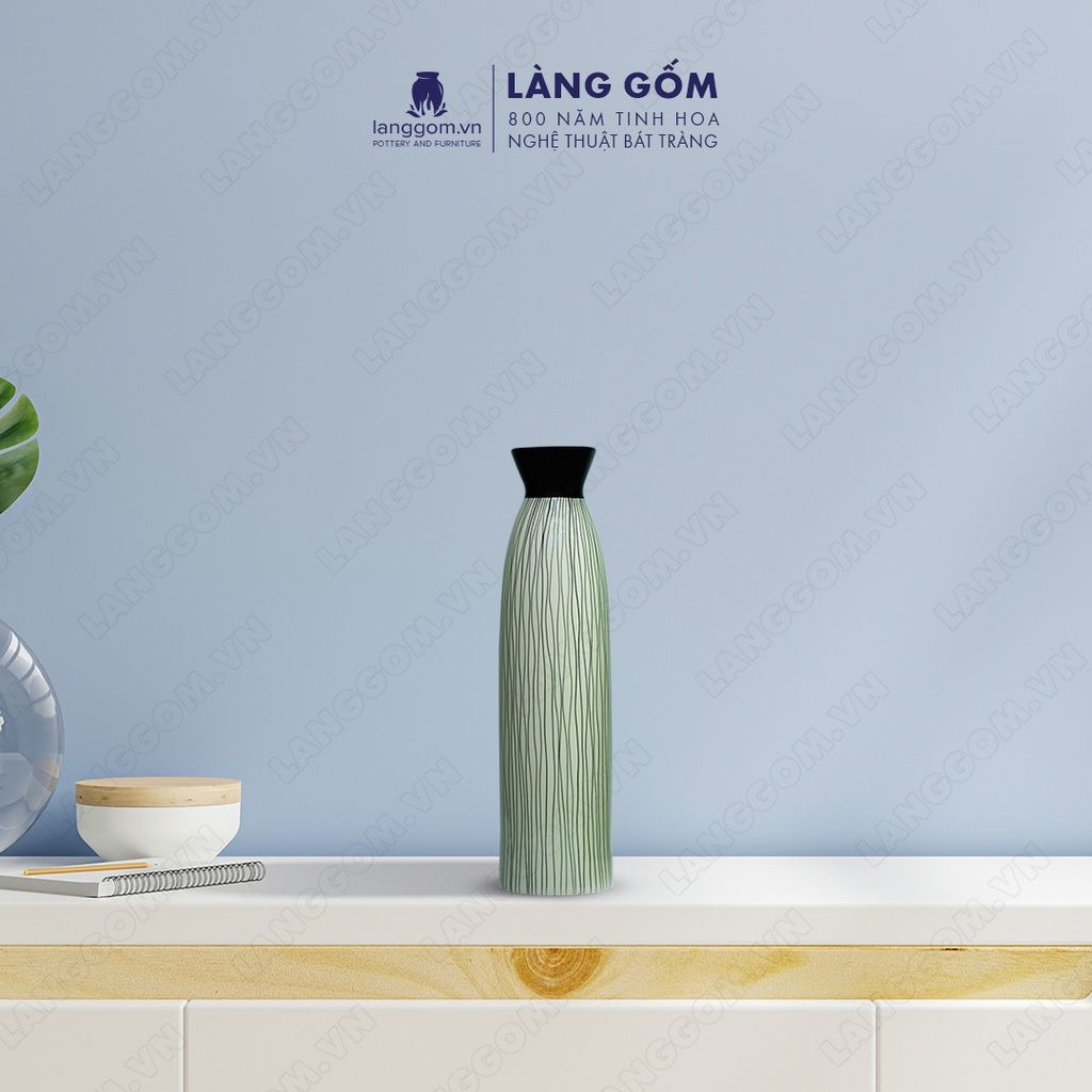 Bình hoa họa tiết kẻ mưa, cắm tuyết mai, thanh liễu, cỏ lau