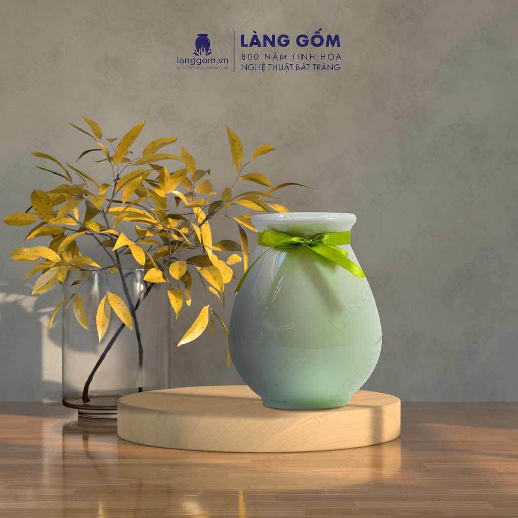 Bình hoa men ngọc dáng lọ bầu