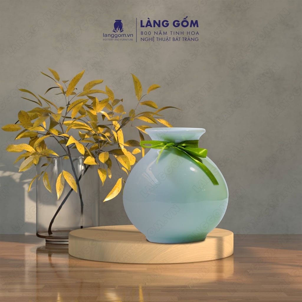 Bình hoa men ngọc dáng vò tròn nhỏ