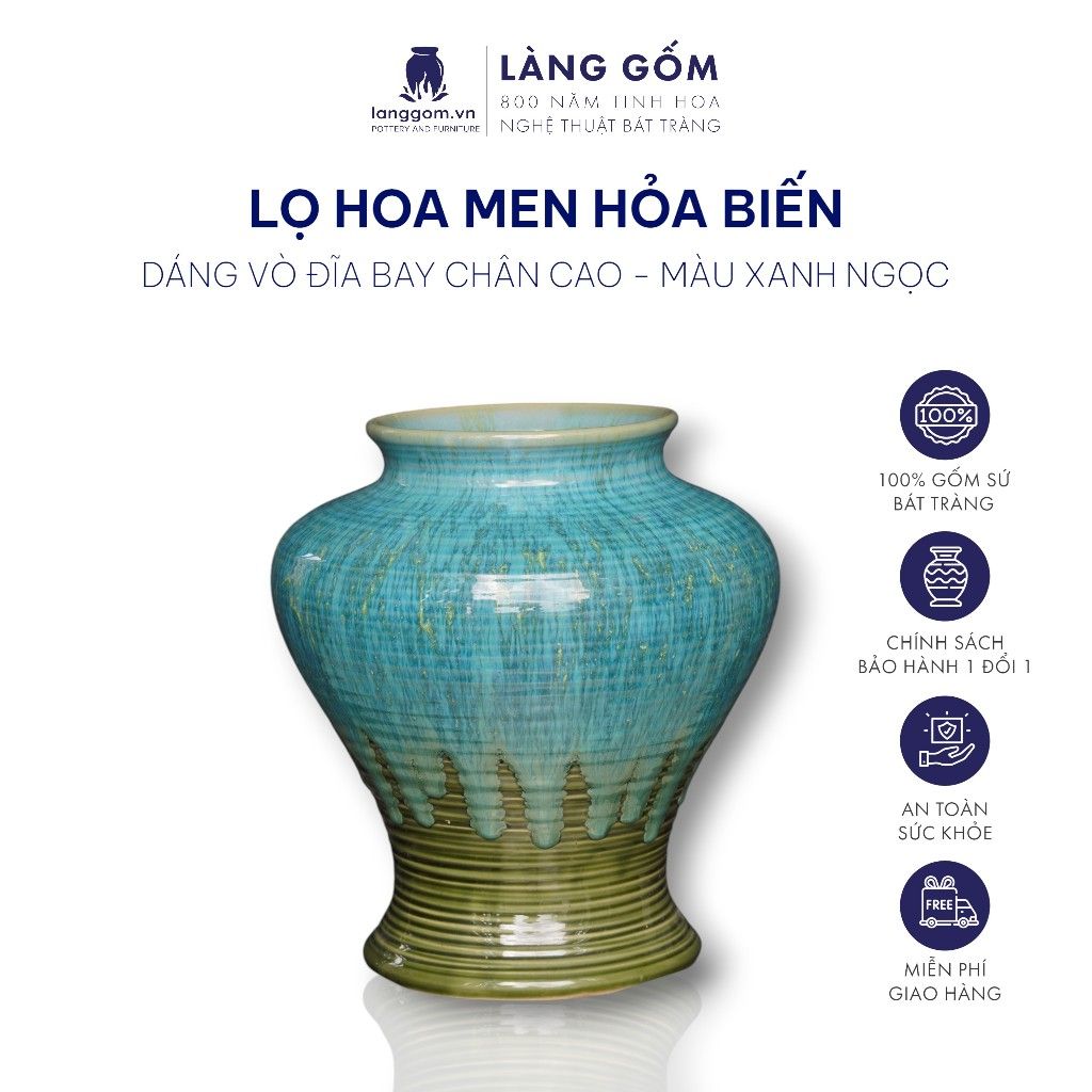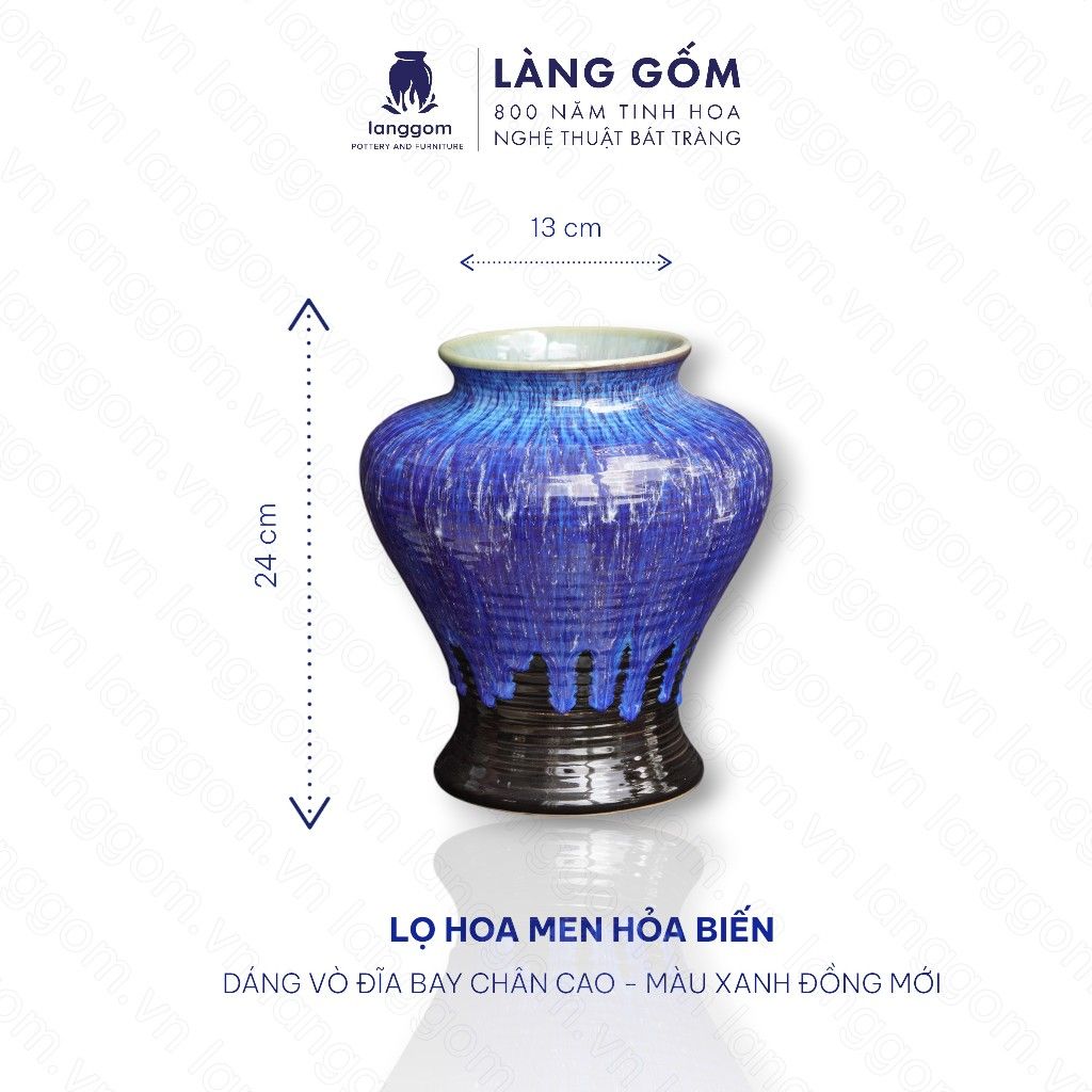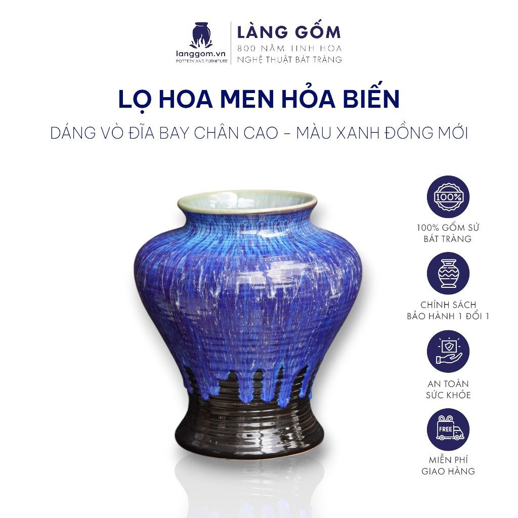 Bình hoa men hỏa biến dáng vò đĩa bay chân cao (TH)