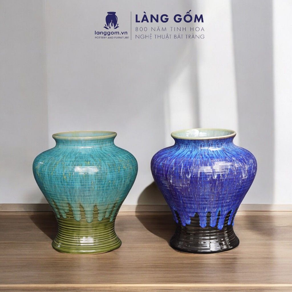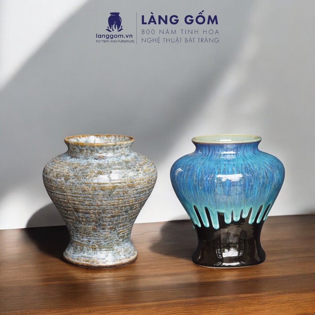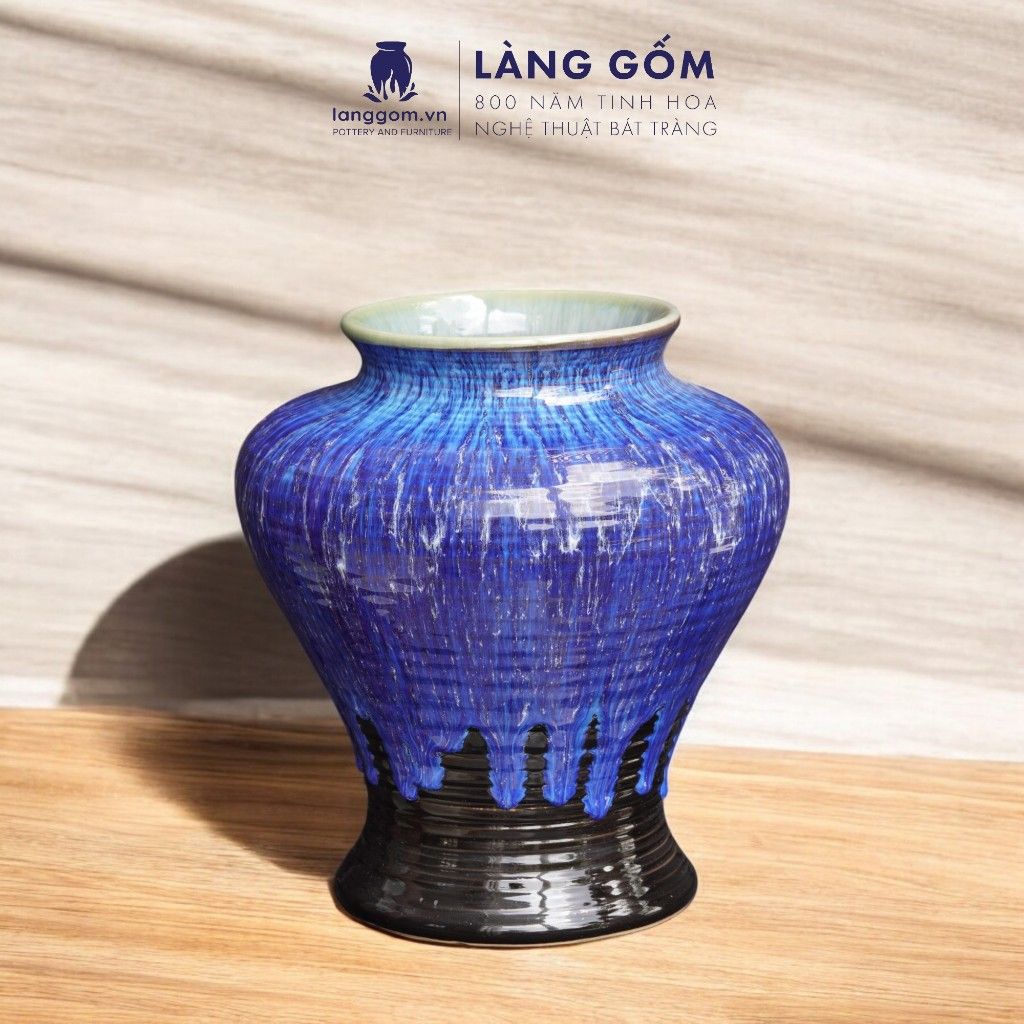 Bình hoa men hỏa biến dáng vò đĩa bay chân cao (TH)