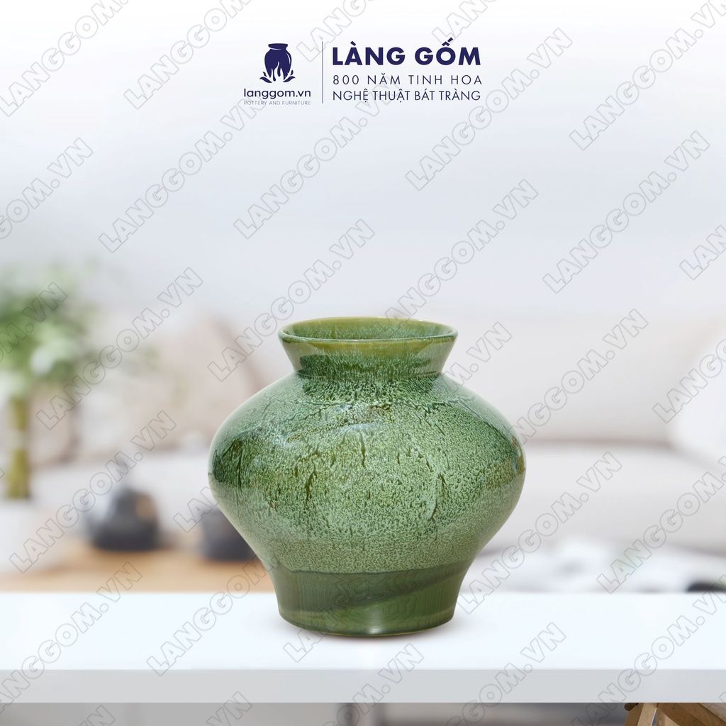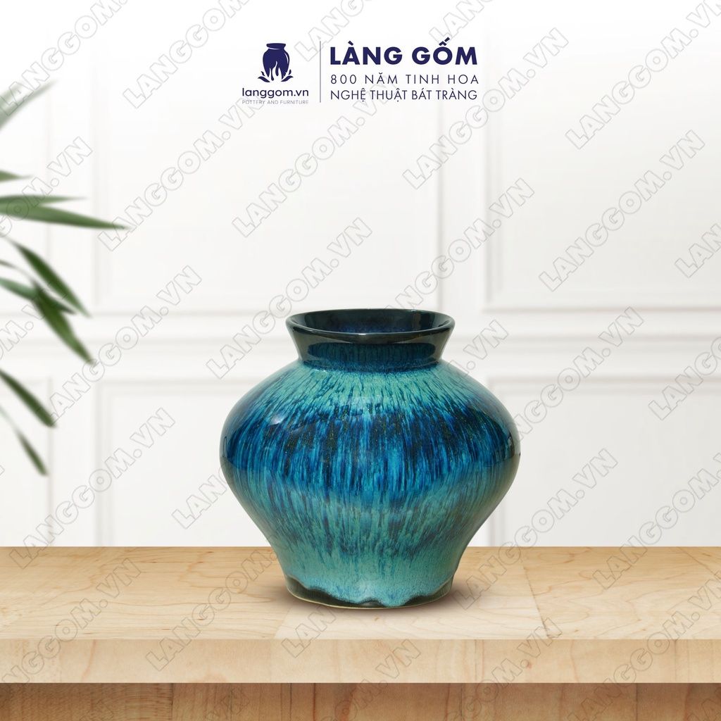Bình hoa men hỏa biến dáng vò đĩa bay chân thấp