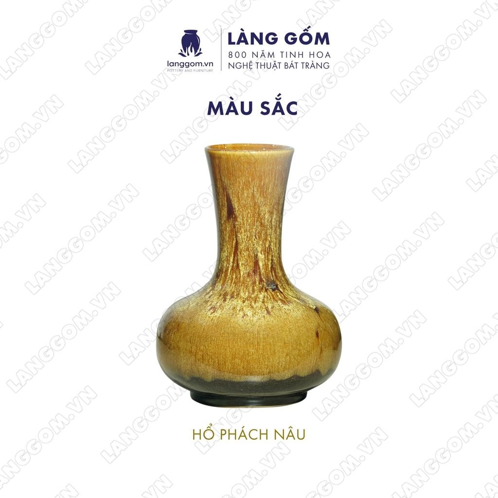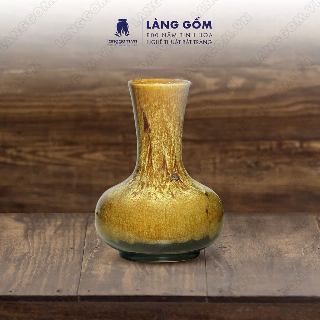 Bình hoa men hỏa biến dáng tỏi dẹt màu hổ phách nâu