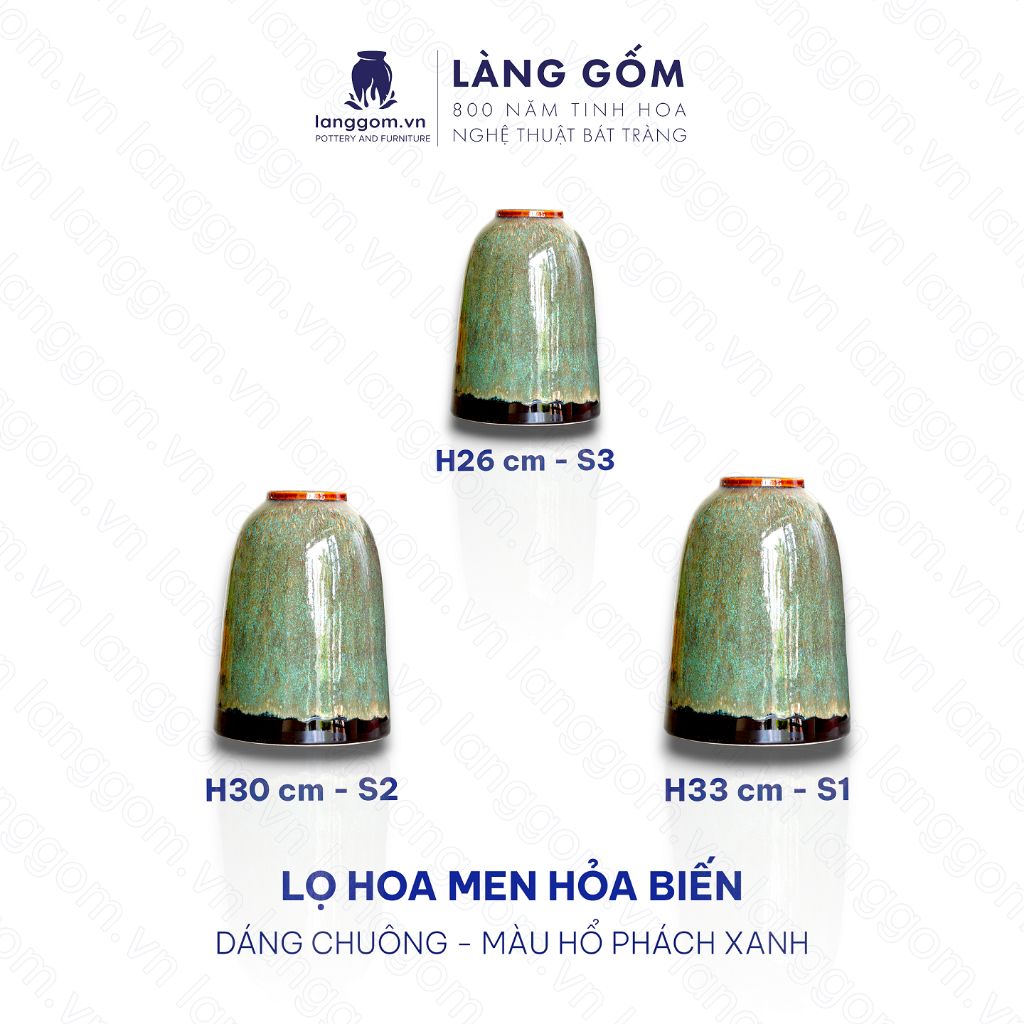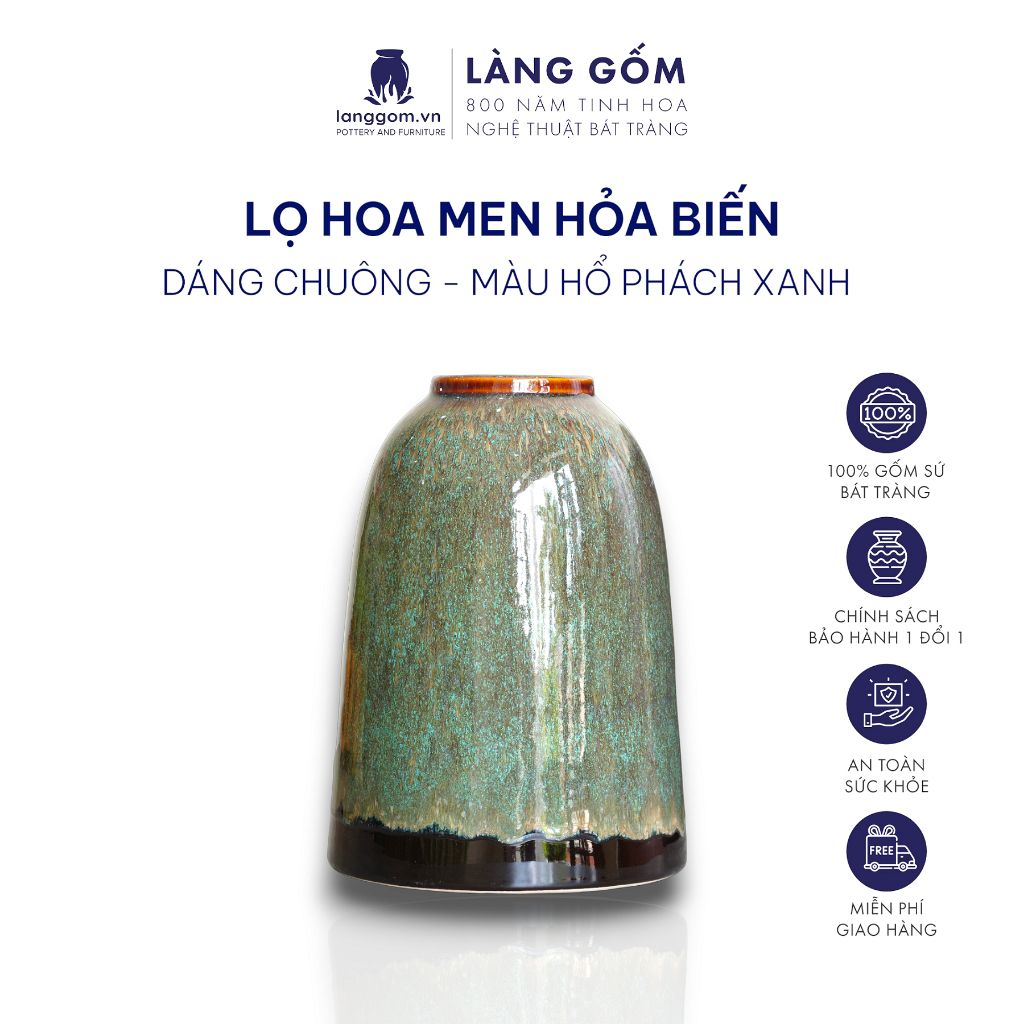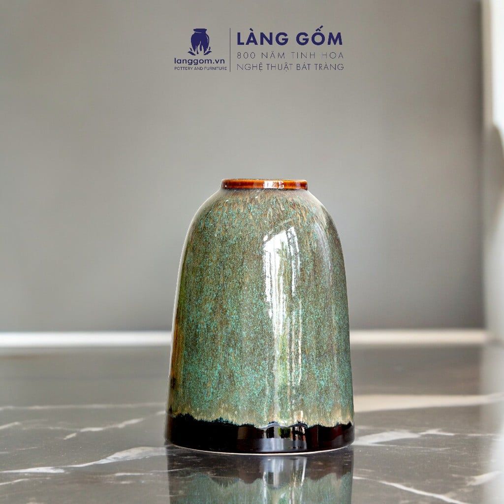 Bình hoa men hoả biến dáng chuông màu hổ phách xanh