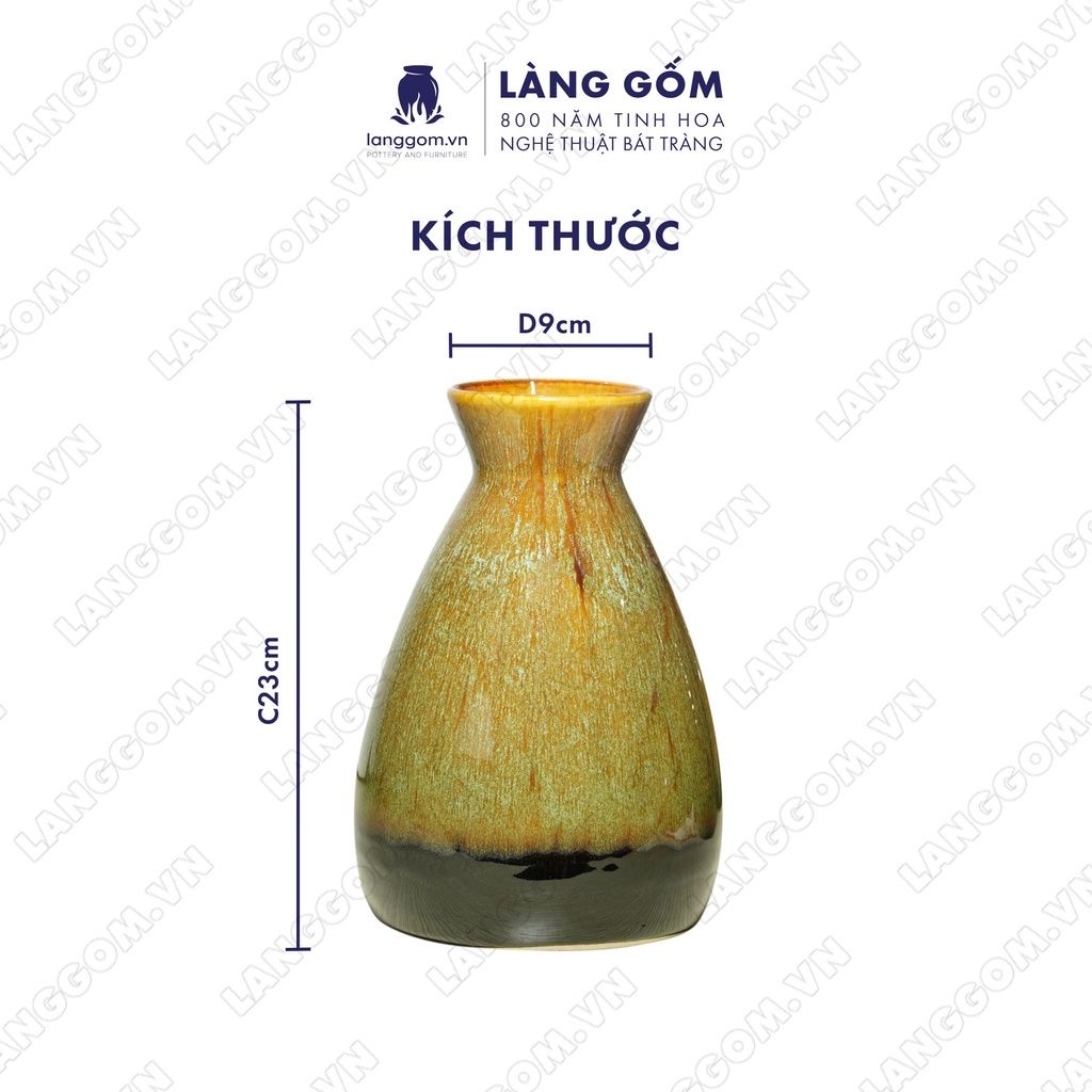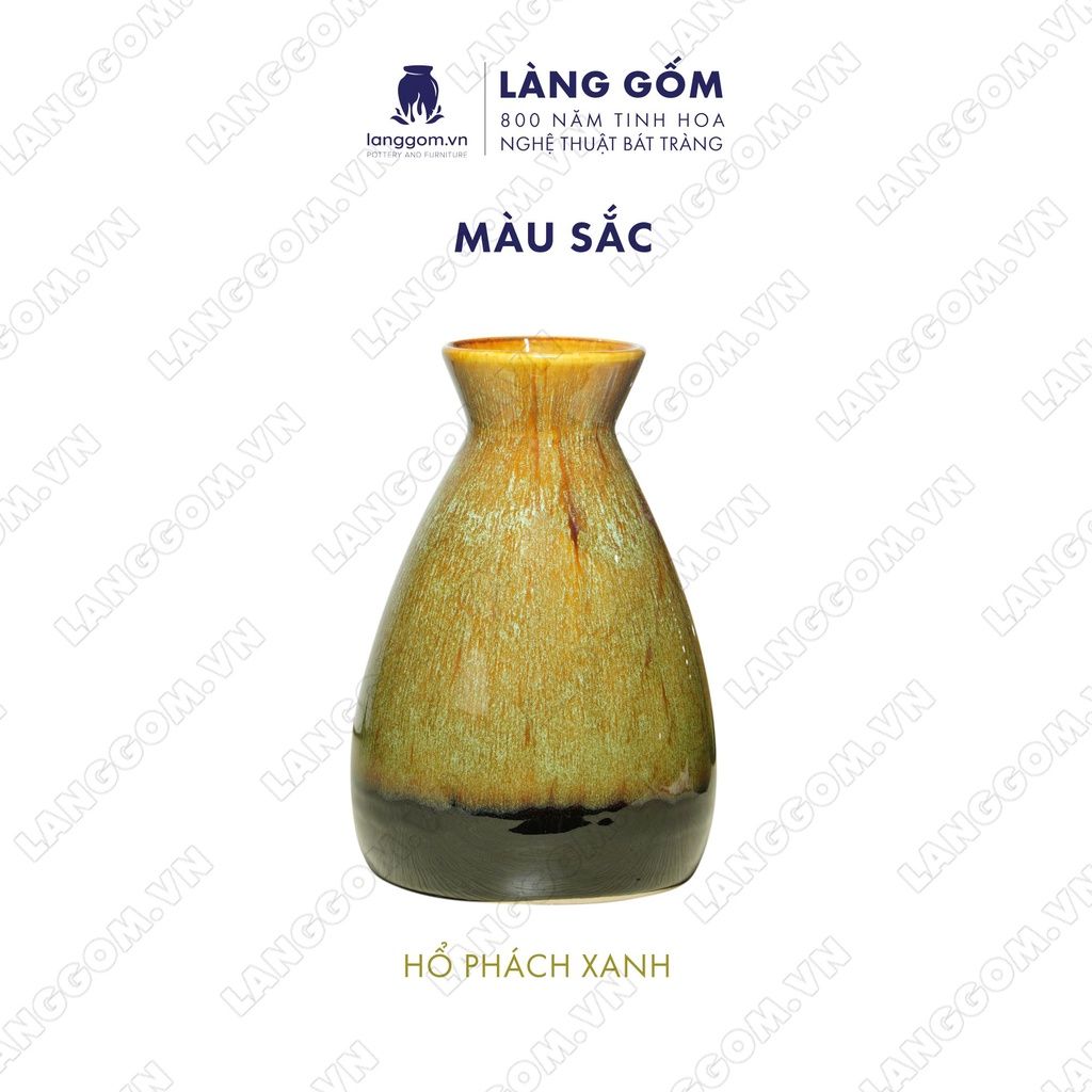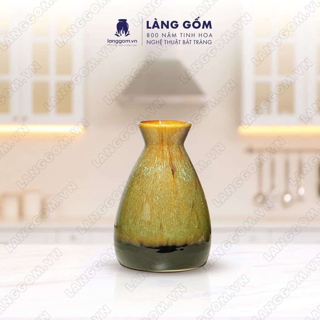Bình hoa men hỏa biến dáng giỏ cua màu hổ phách xanh