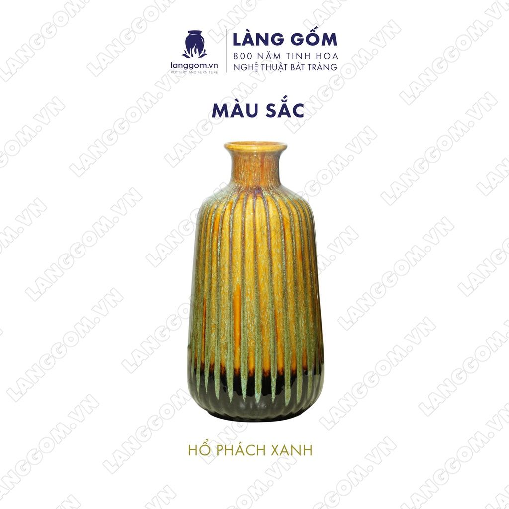Bình hoa men hỏa biến dáng lá dứa màu hổ phách xanh