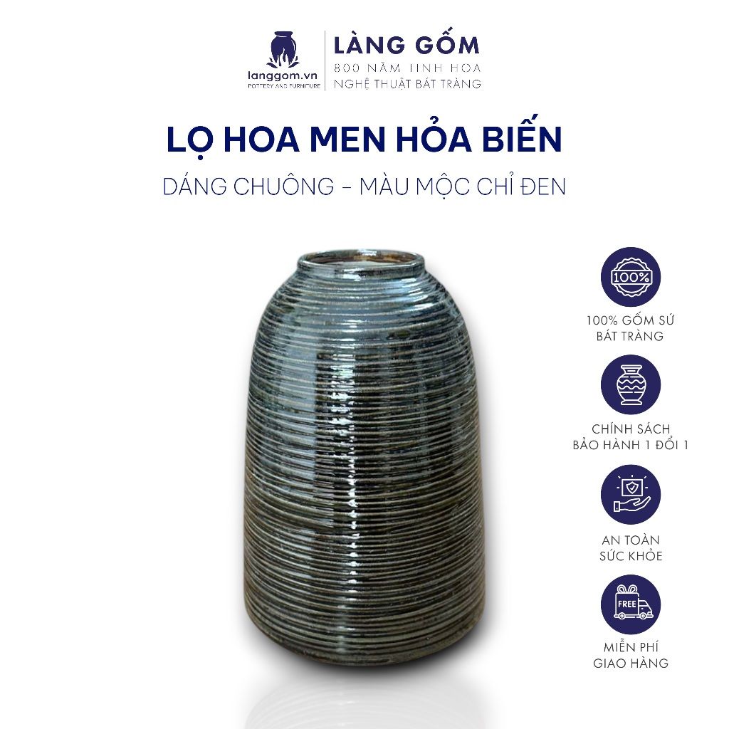 Bình hoa men hỏa biến dáng chuông màu mộc chỉ đen
