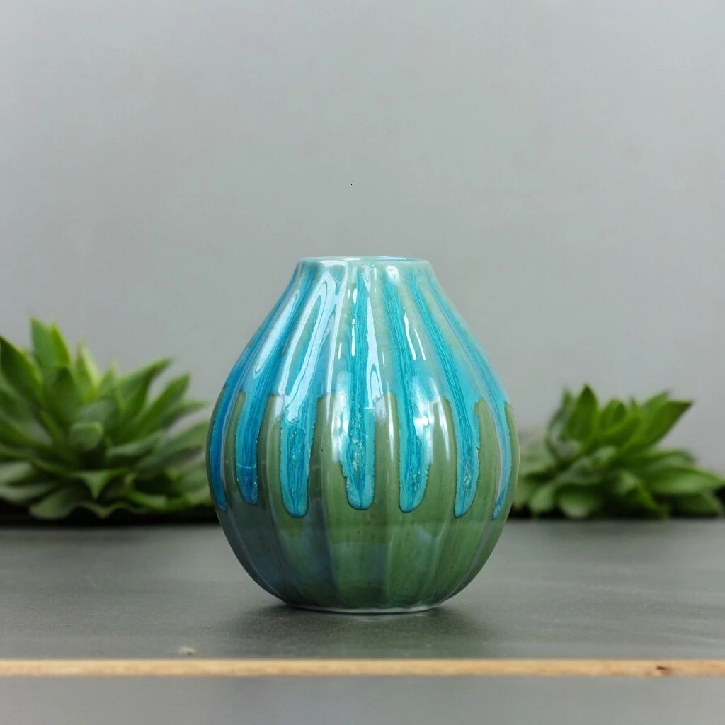 Bình hoa men hỏa biến dáng búp sen màu thiên thanh