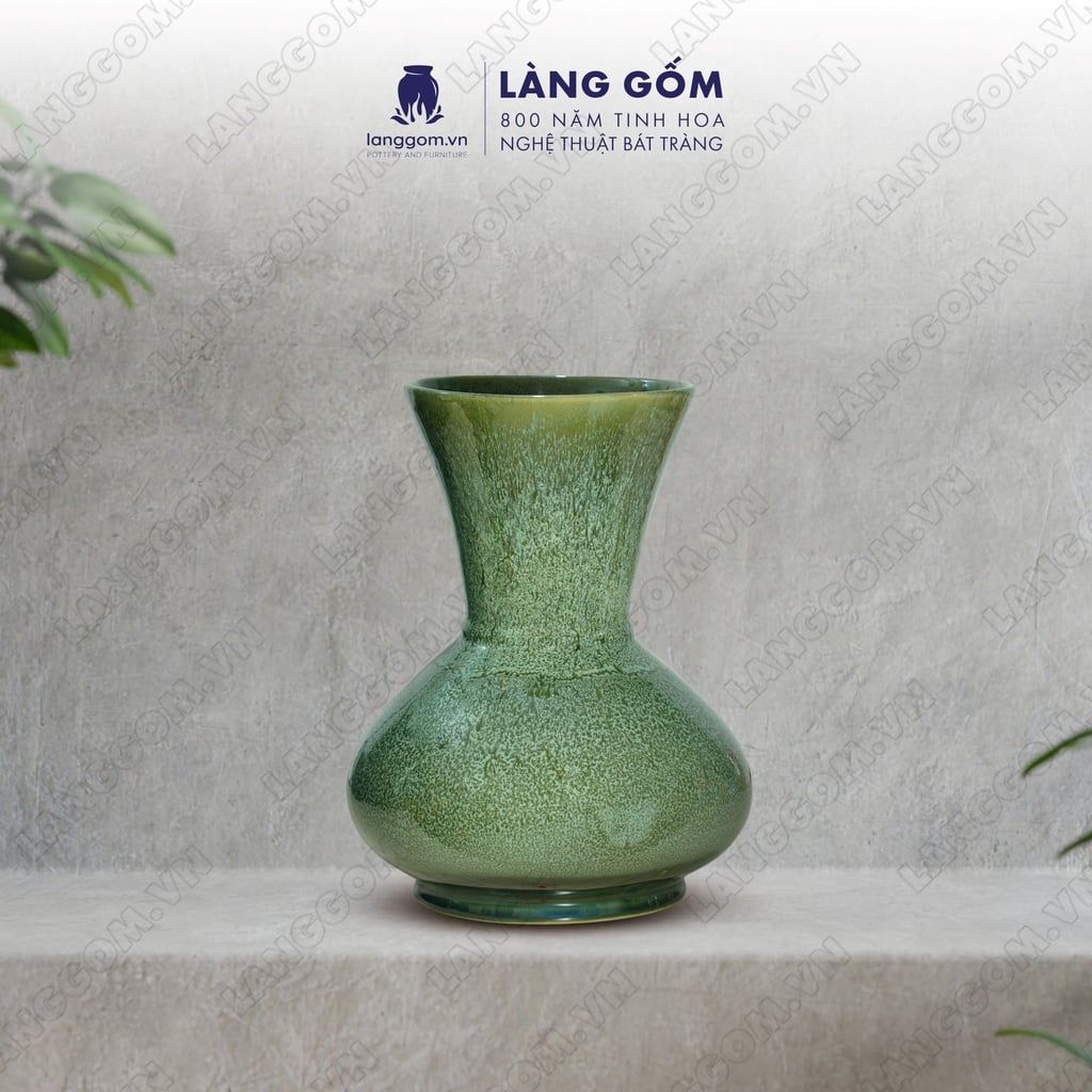 Bình hoa men hỏa biến dáng tỏi dẹt màu thiên thanh