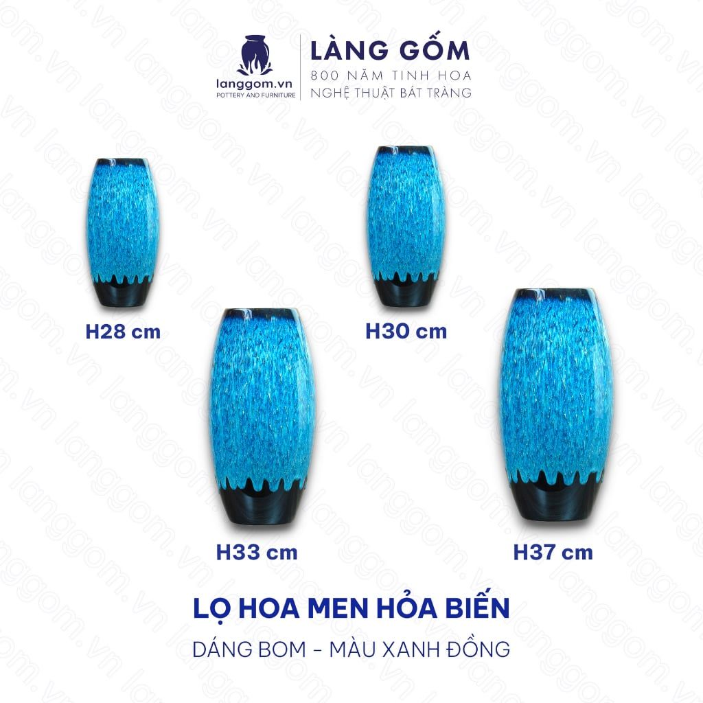 Bình hoa men hỏa biến dáng bom đại màu xanh đồng