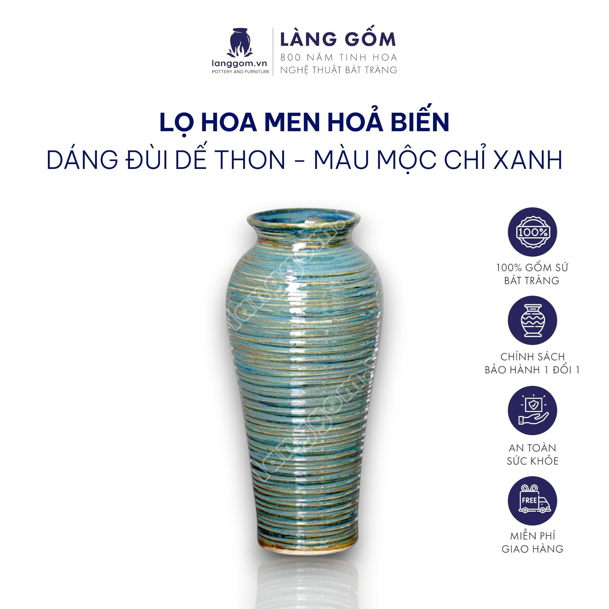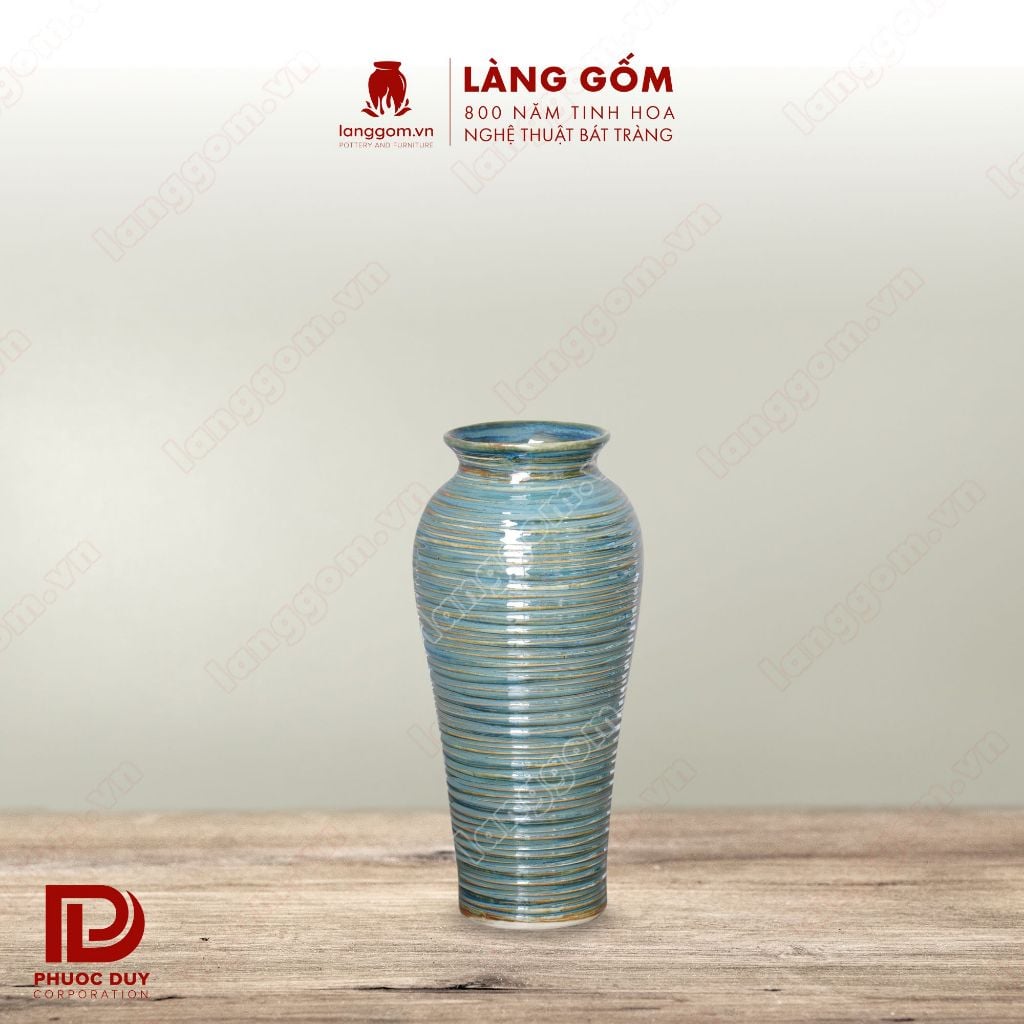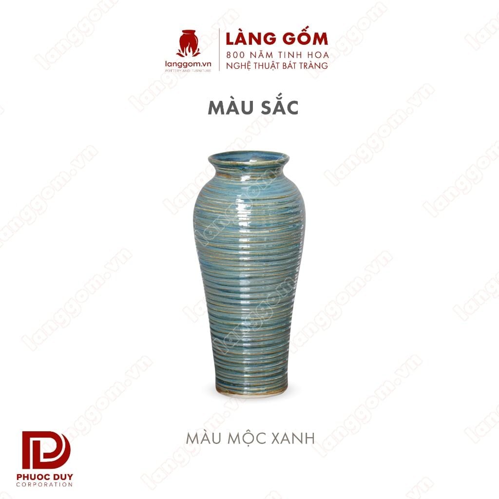 Bình hoa men hỏa biến màu mộc chỉ xanh dáng đùi dế thon