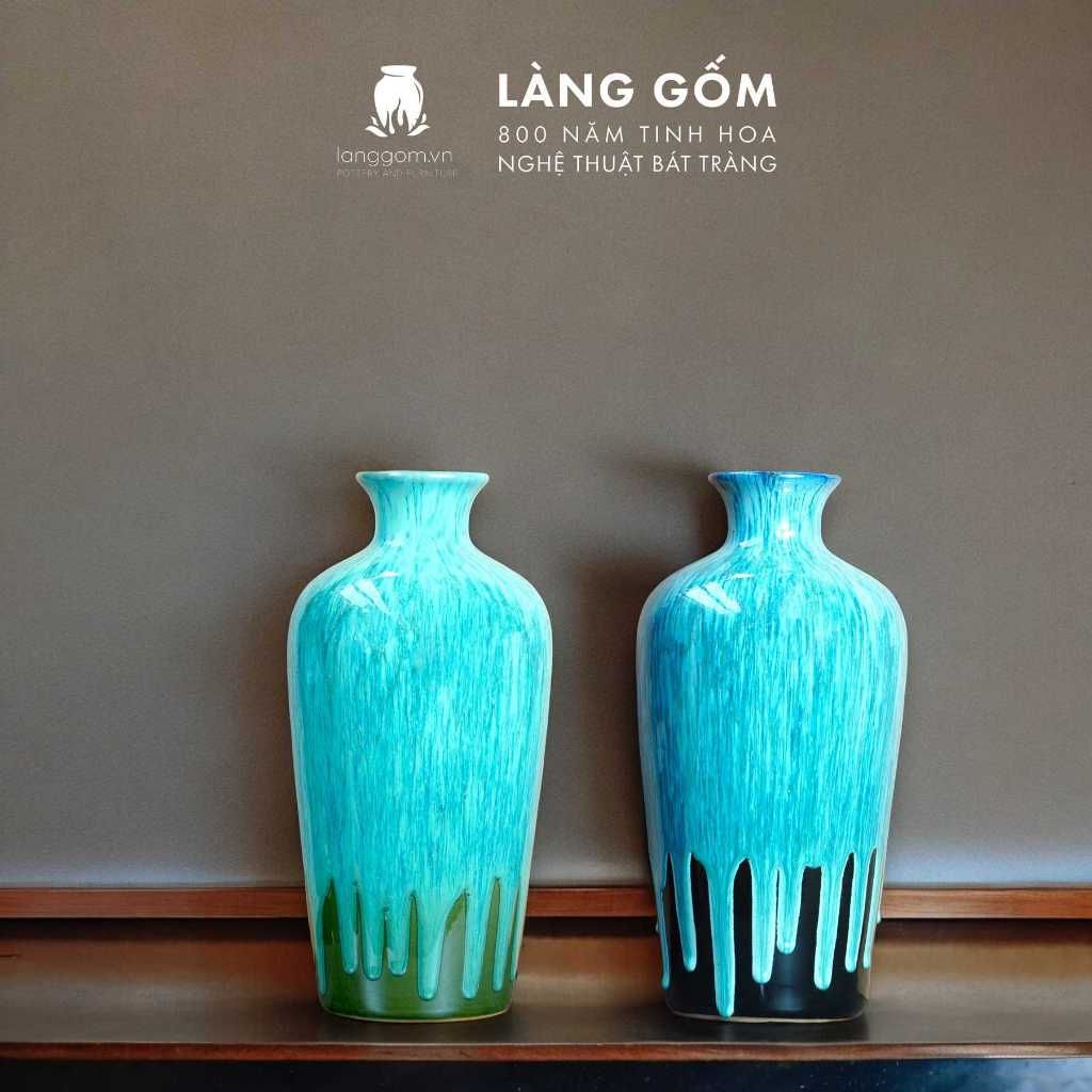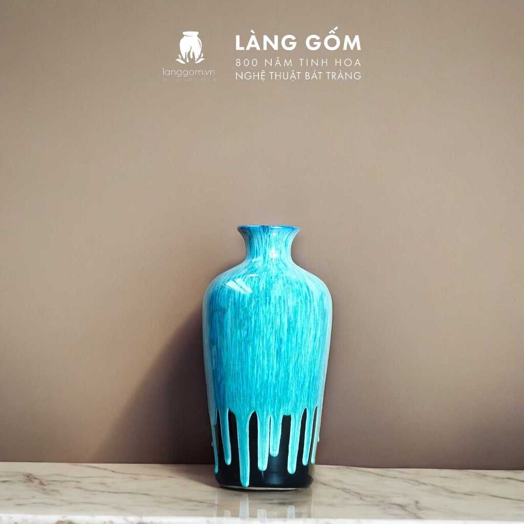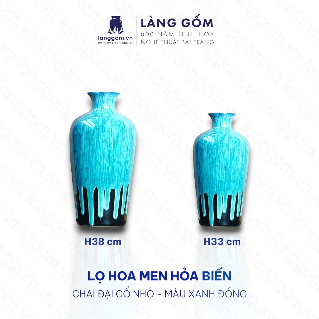 Bình hoa men hỏa biến dáng chai đại cổ nhỏ màu xanh đồng