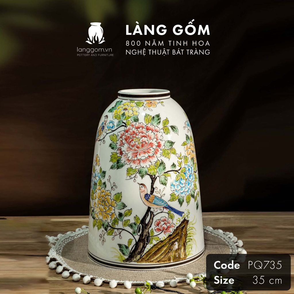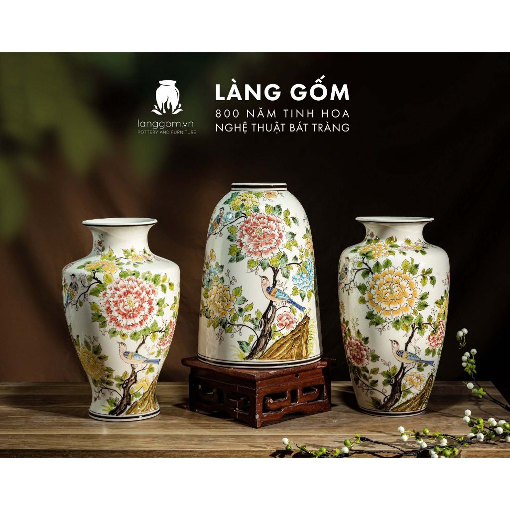 Bình hoa men màu vẽ tay họa tiết hoa phú quý