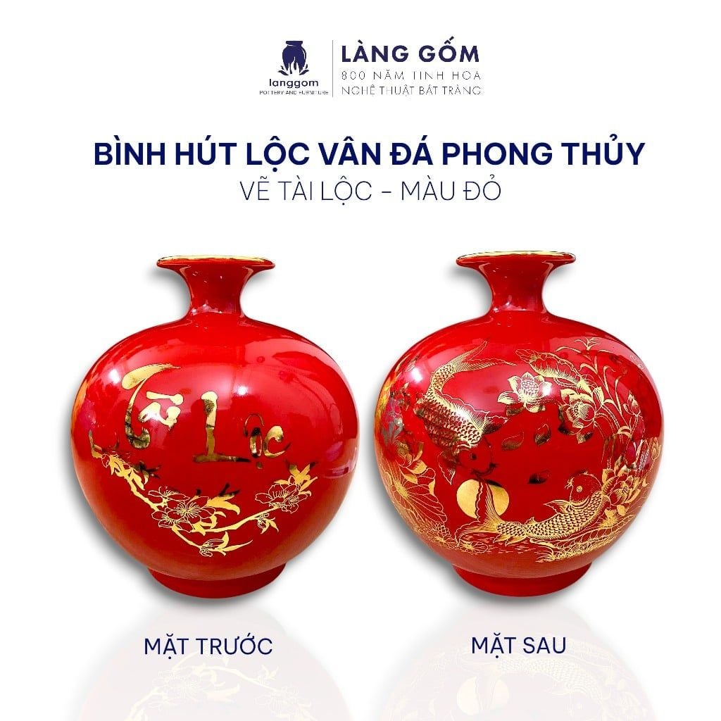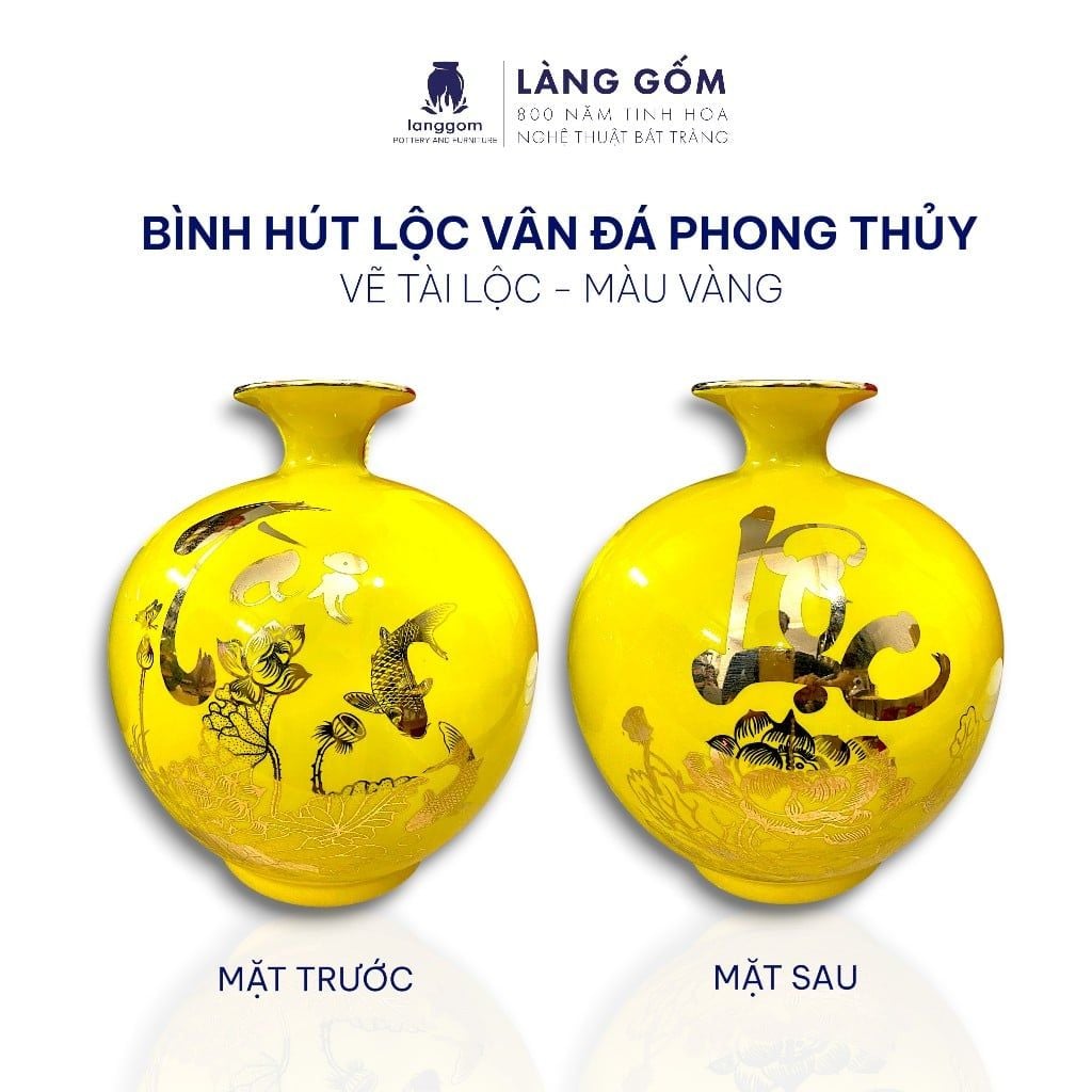 Bình hút lộc dáng cao màu vân đá phong thủy vẽ chỉ vàng 18k nhiều họa tiết - cao 22cm, 25cm