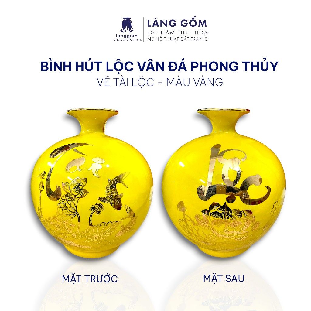 Bình hút lộc dáng cao màu vân đá phong thủy vẽ chỉ vàng 18k
