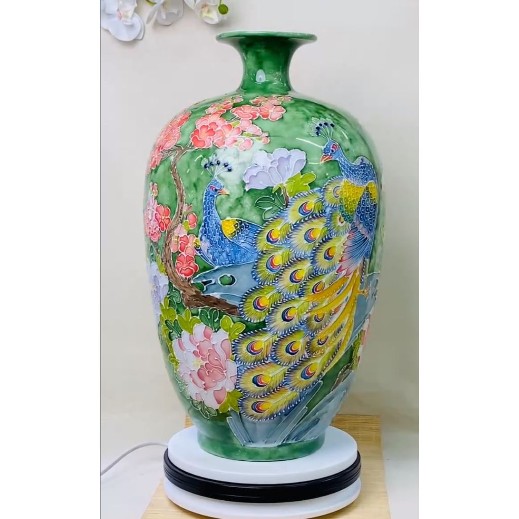 Bình hút lộc dáng cao, vẽ dệt gấm thêu hoa nổi trên gốm, họa tiết 3D, hoa nổi dát vàng cao 51cm