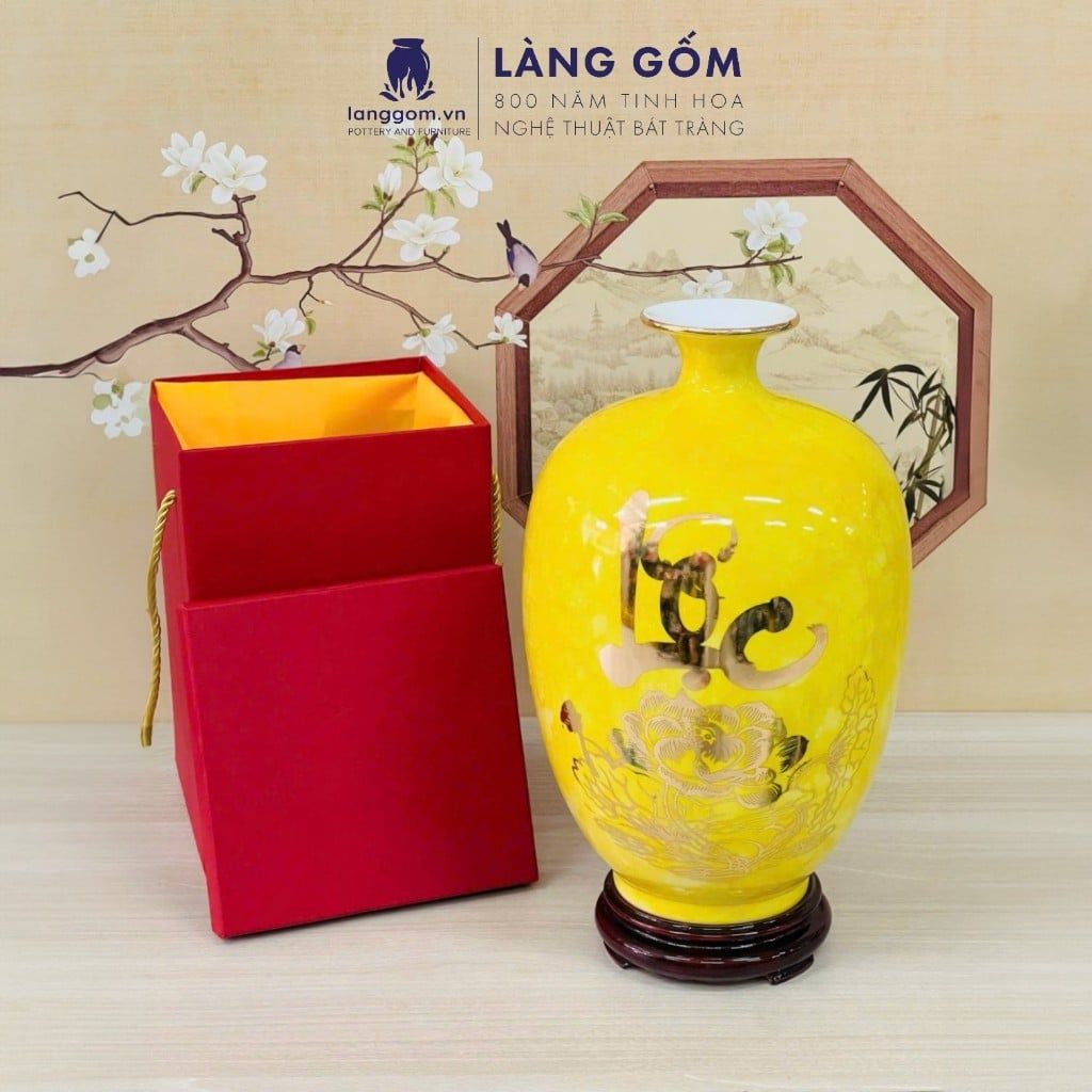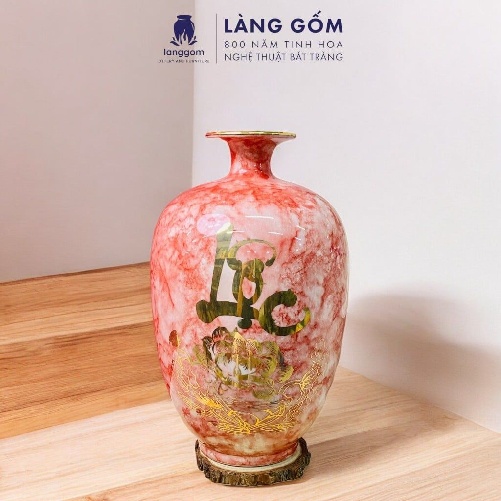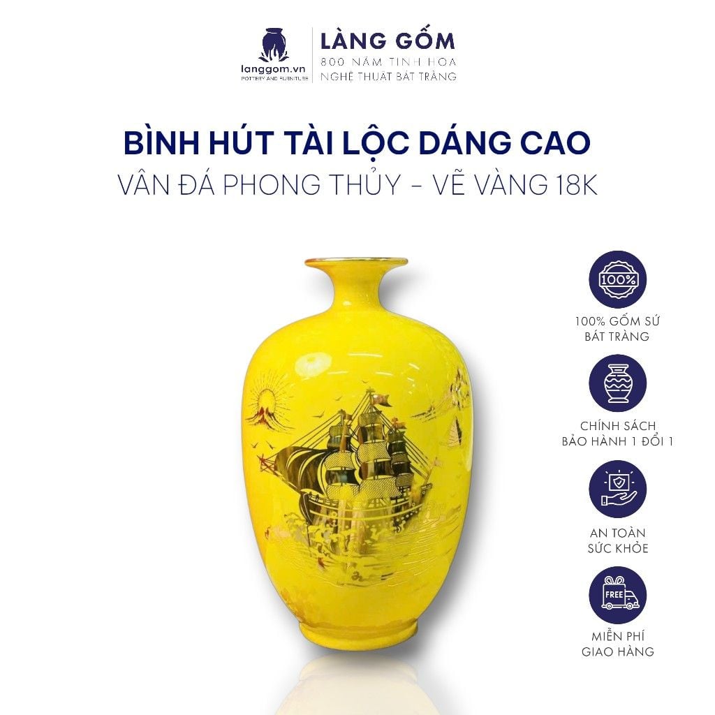 Bình hút lộc vân đá vẽ nổi Thuyền Buồm Tài Lộc vàng 18k phong thủy
