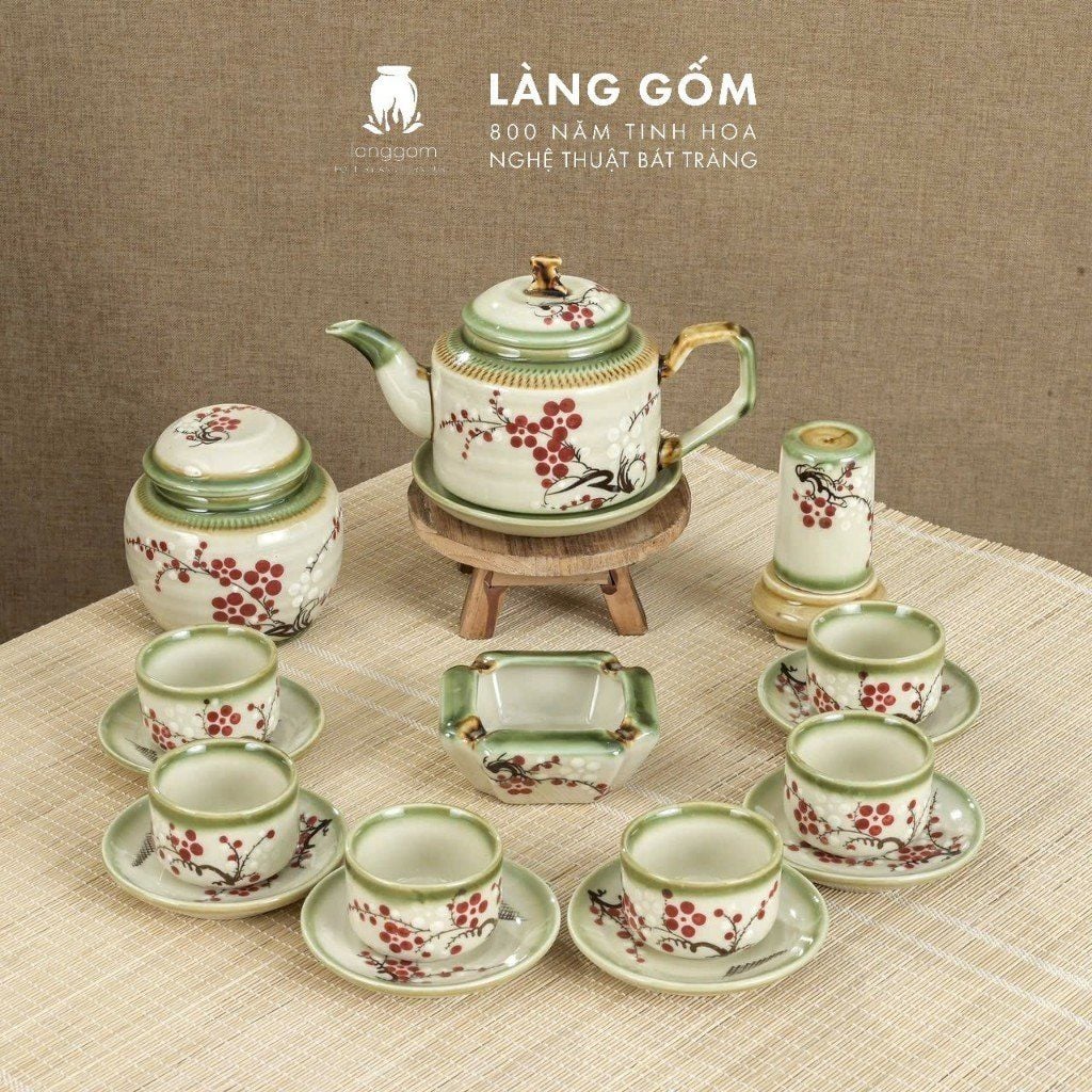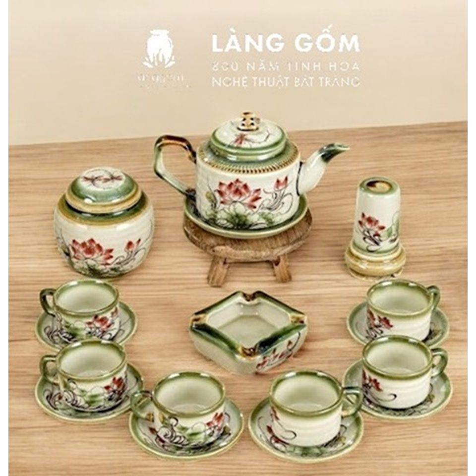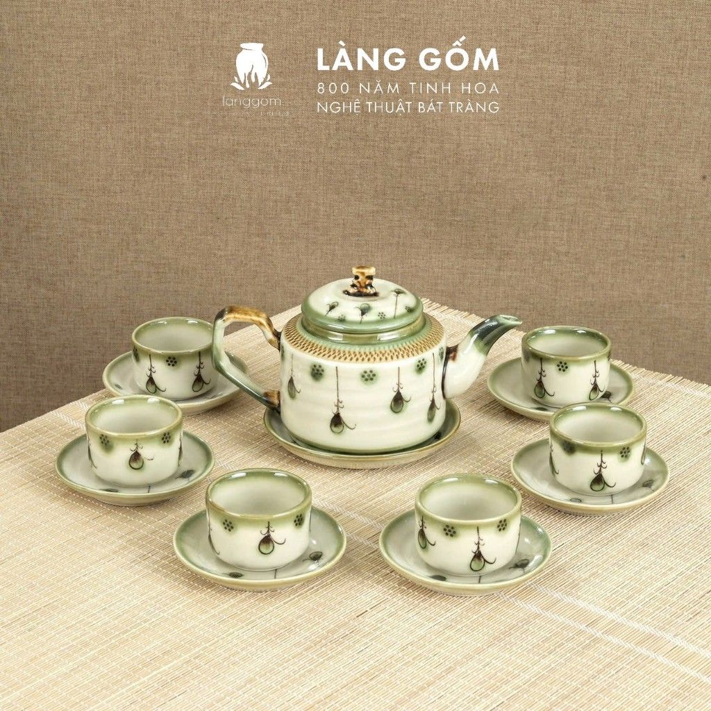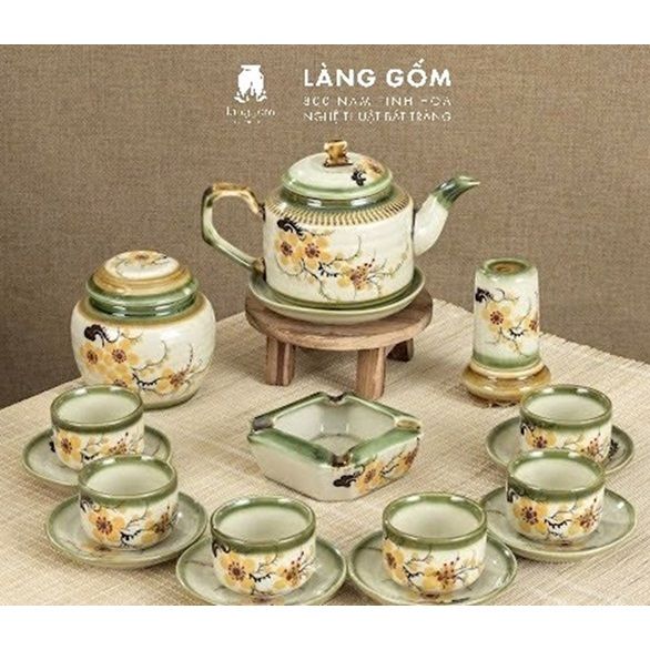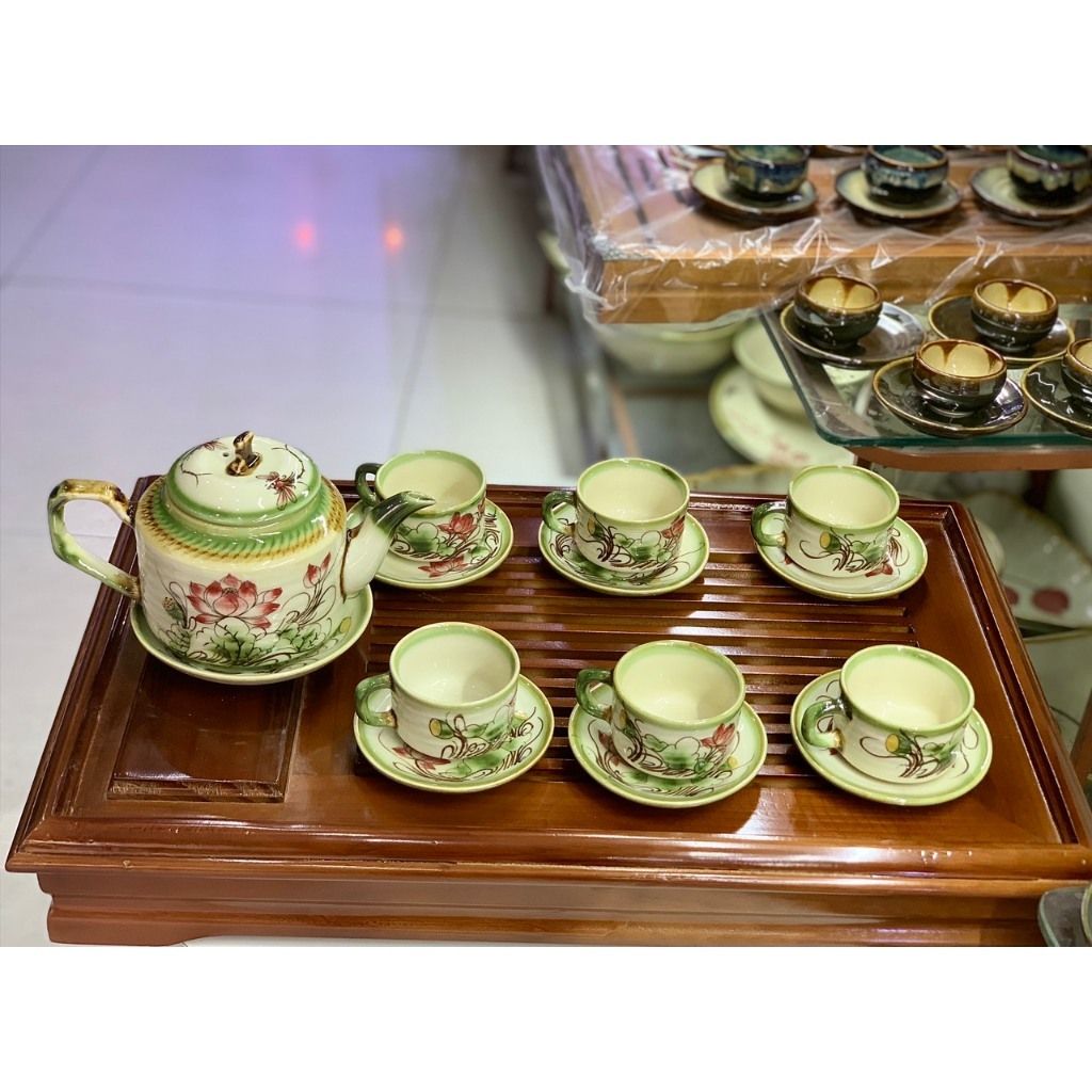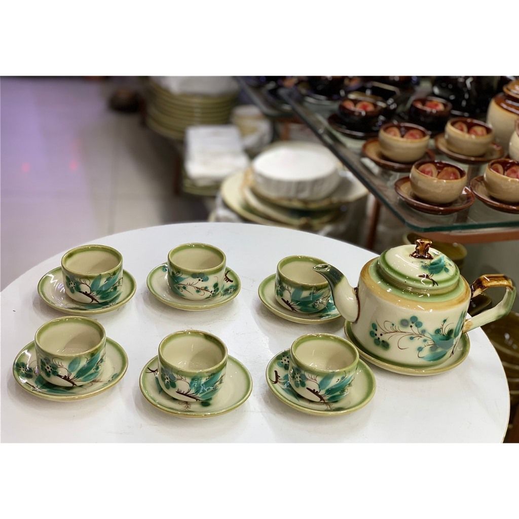 Bộ ấm chén vẽ tay kiểu chữ thập vẽ hoa - dung tích 500ml