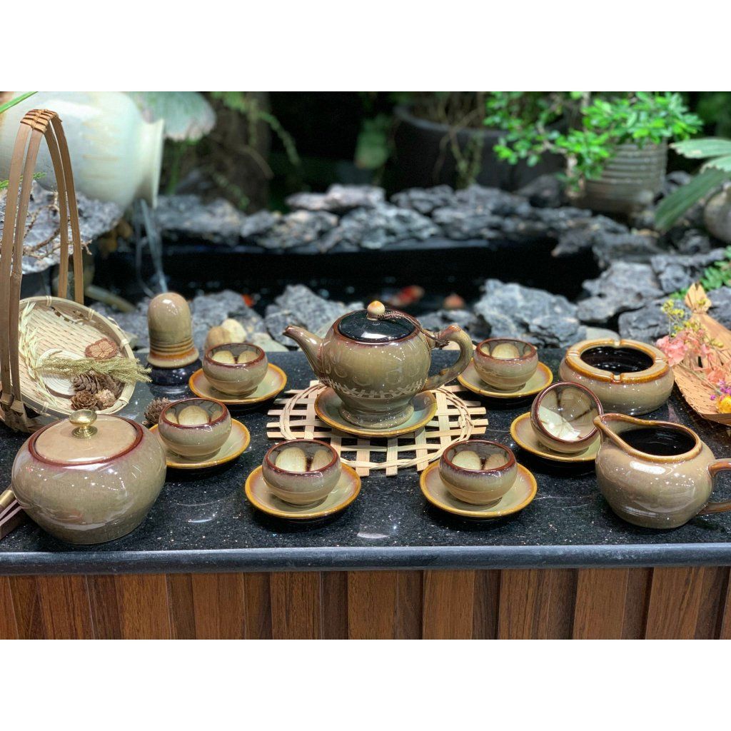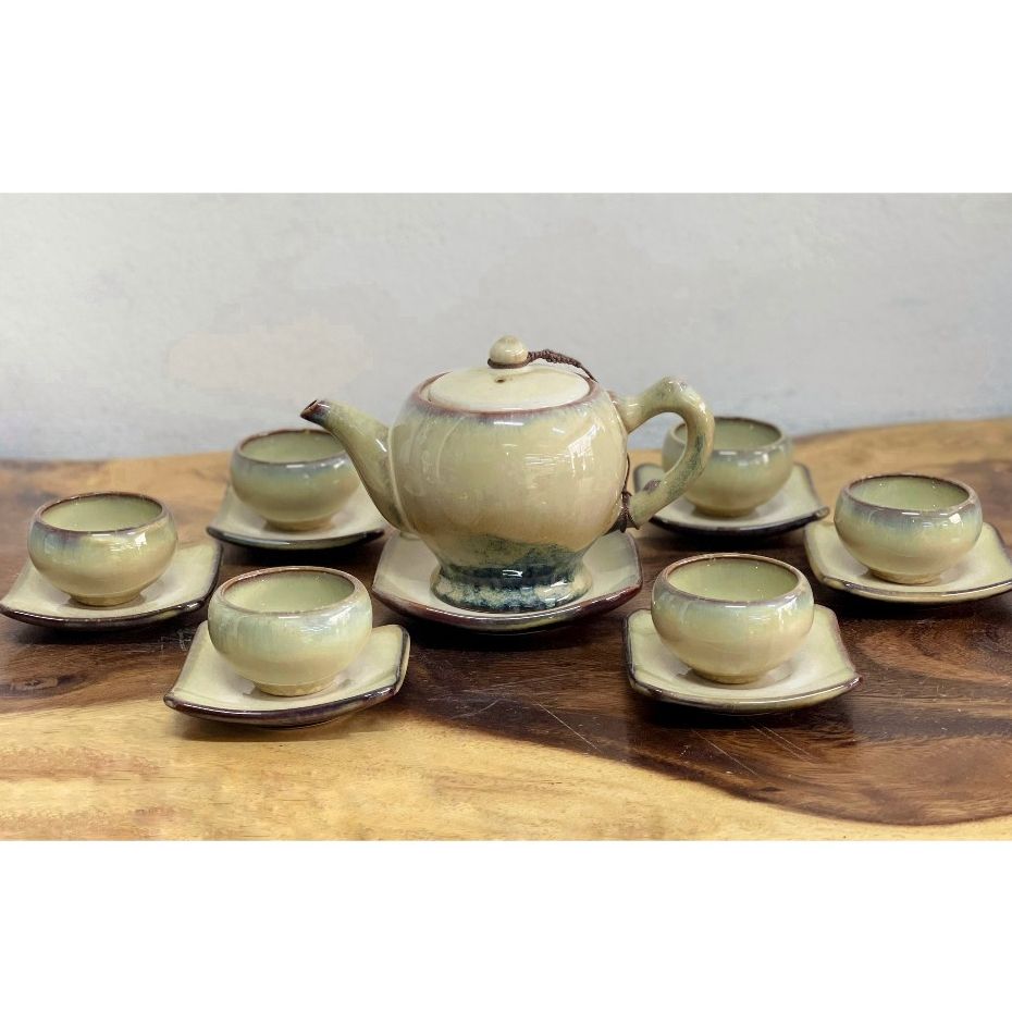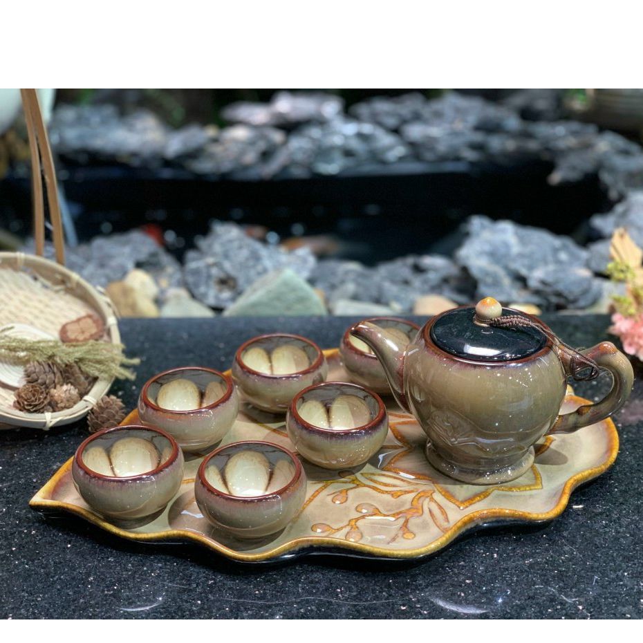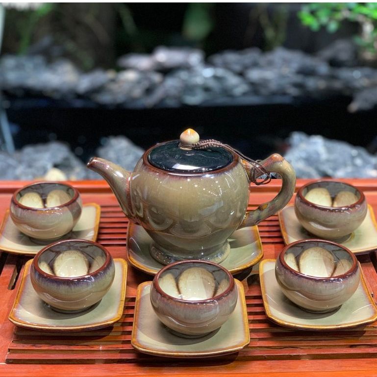 Bộ ấm chén men hỏa biến dáng ly