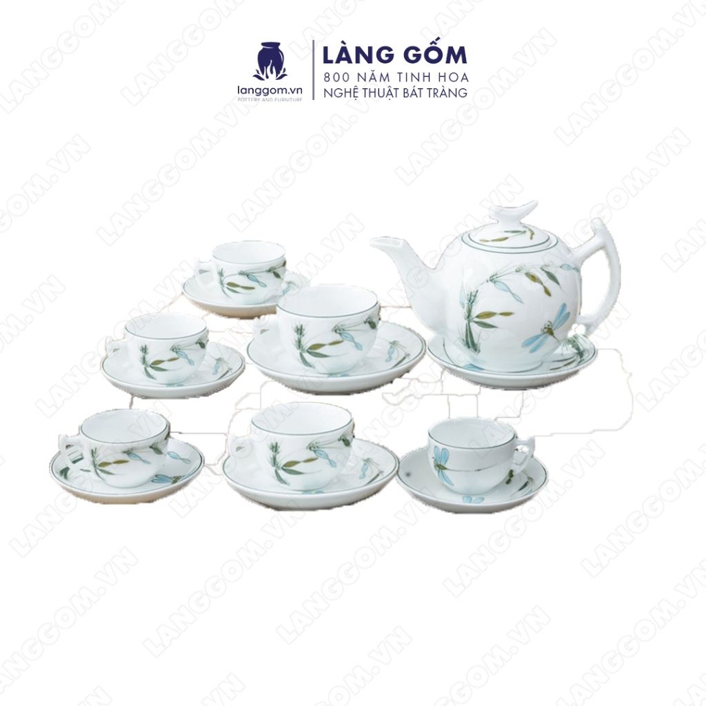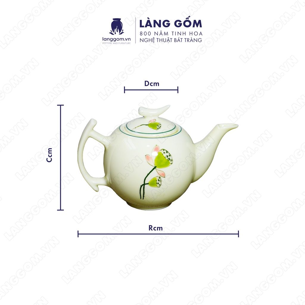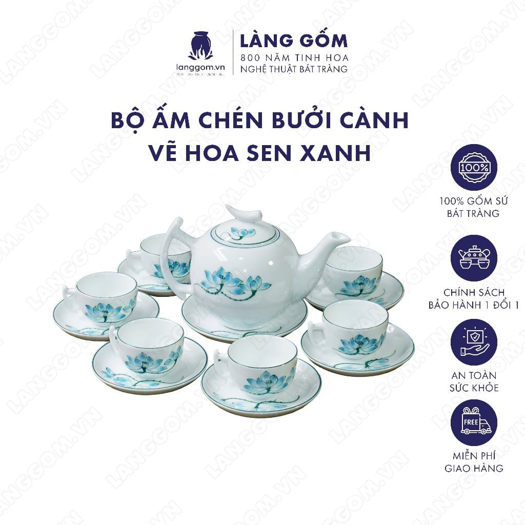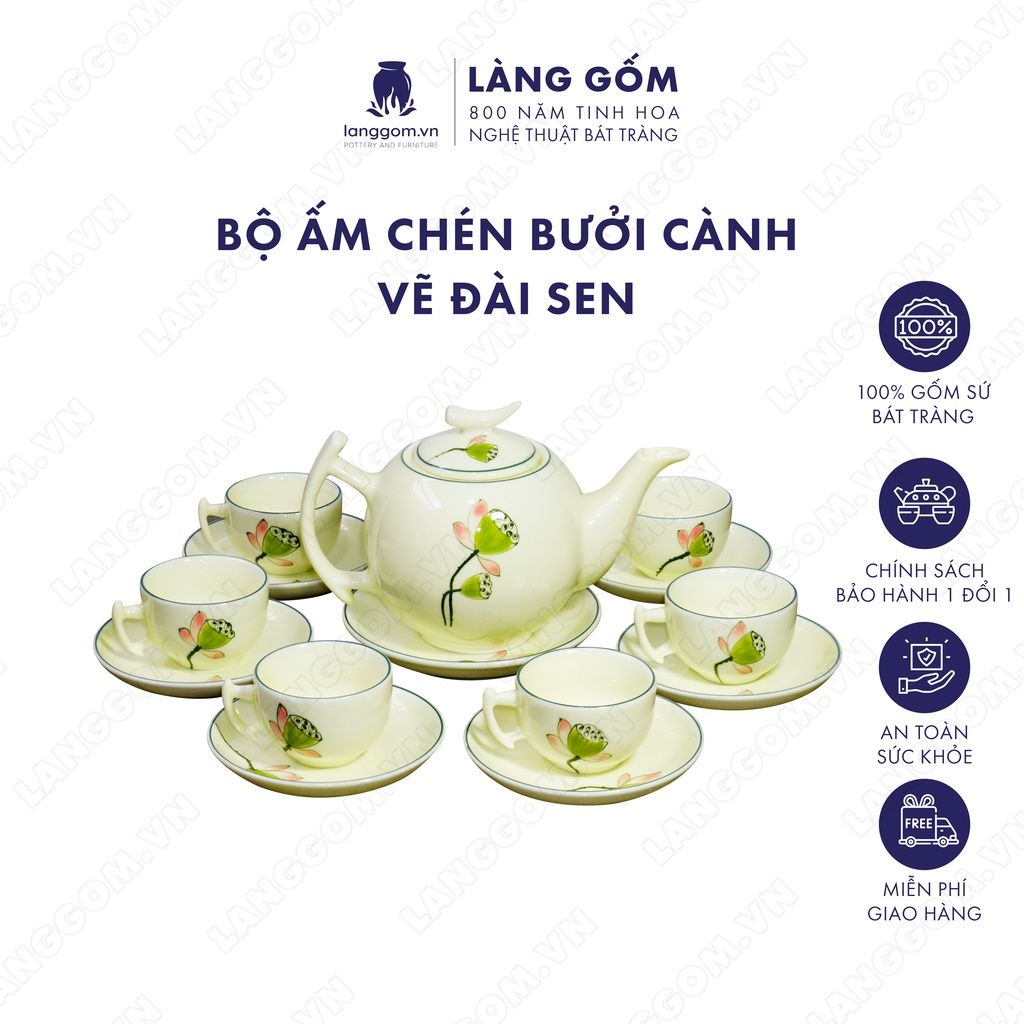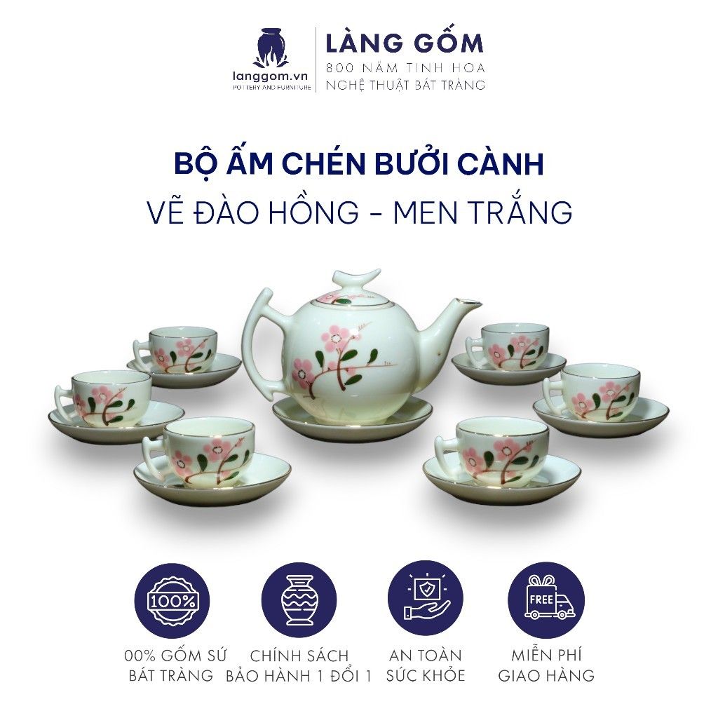 Bộ ấm chén dáng Bưởi cành họa tiết vẽ hoa