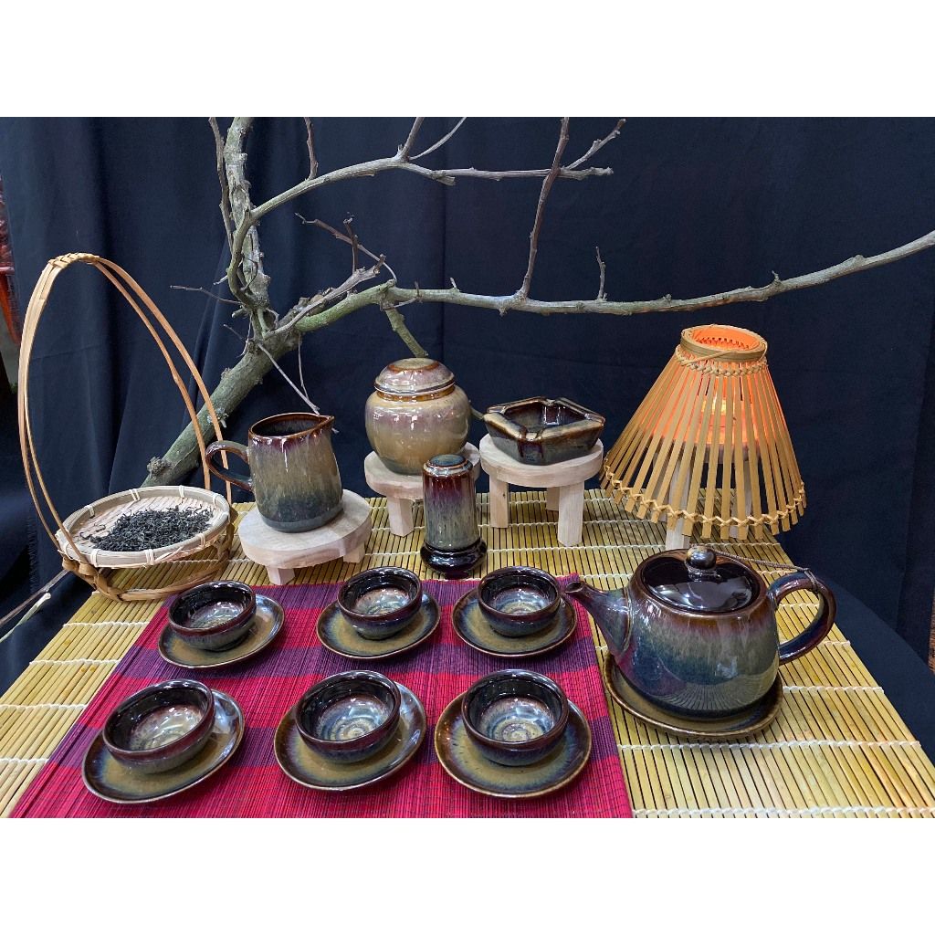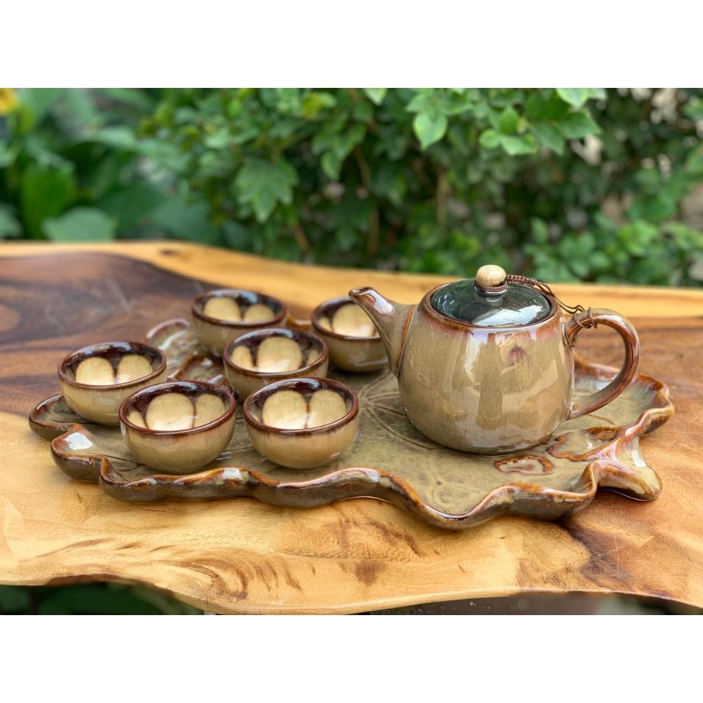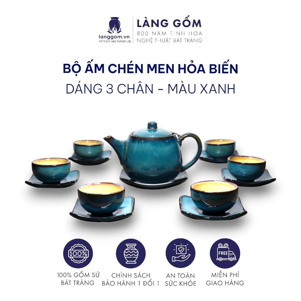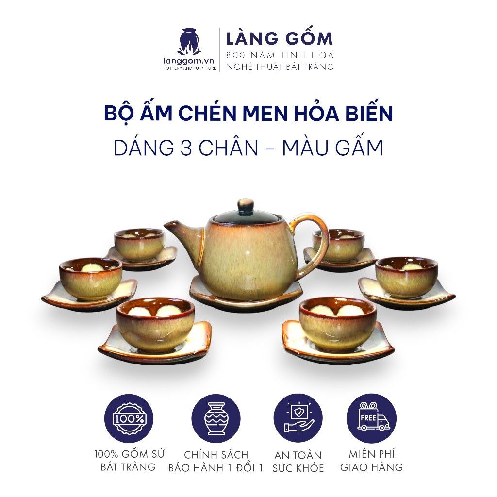 Bộ ấm chén men hỏa biến dáng ba chân