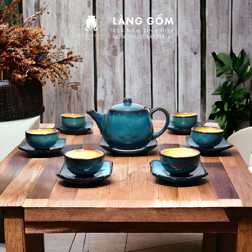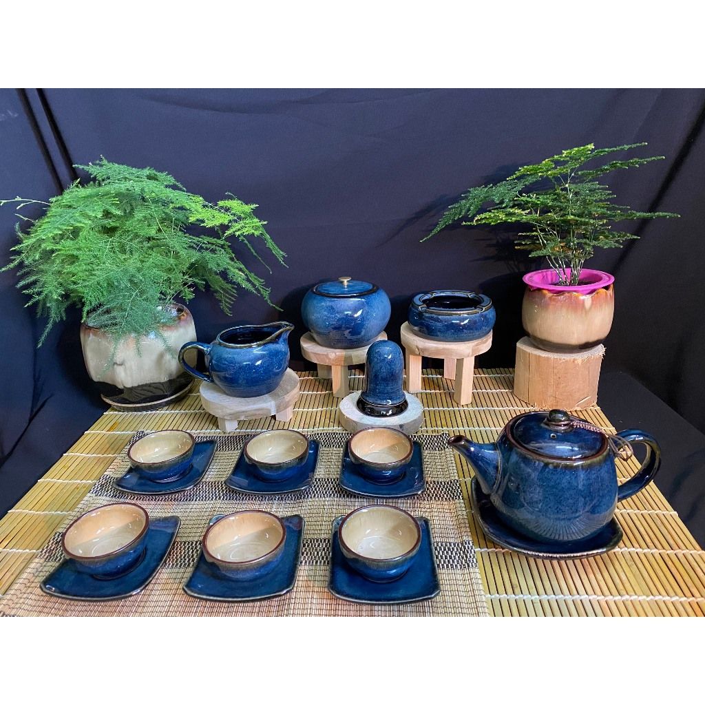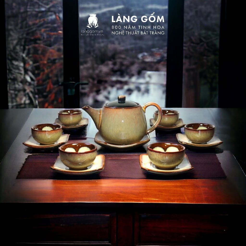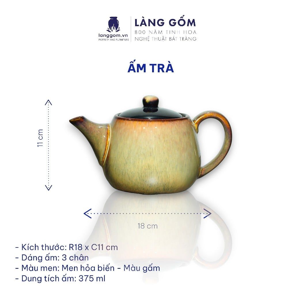Bộ ấm chén men hỏa biến dáng ba chân