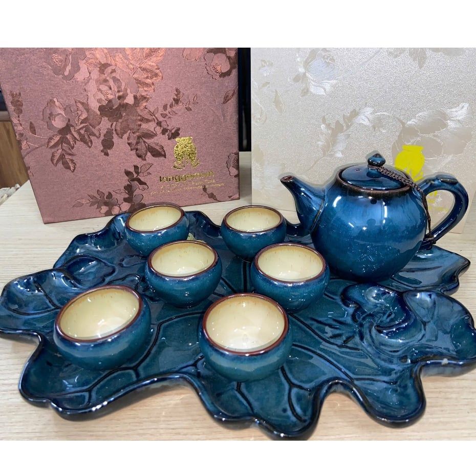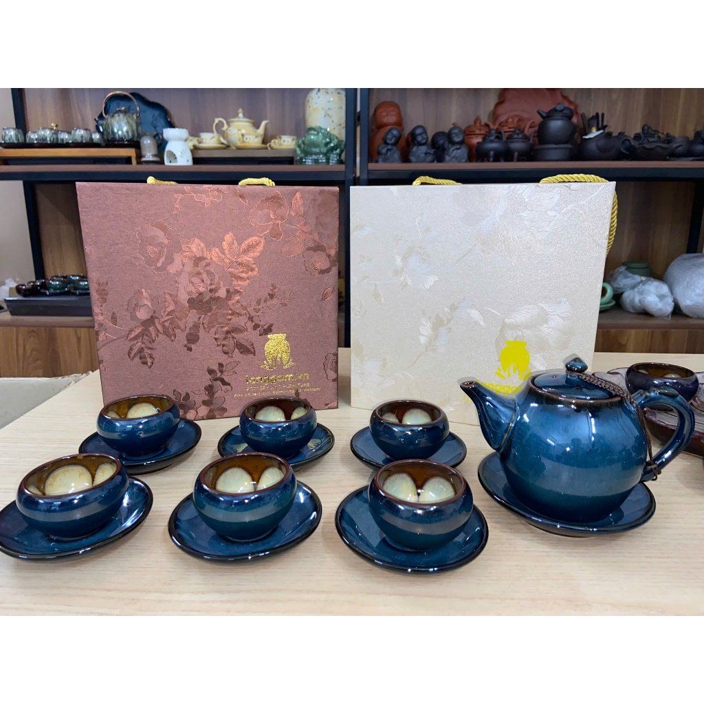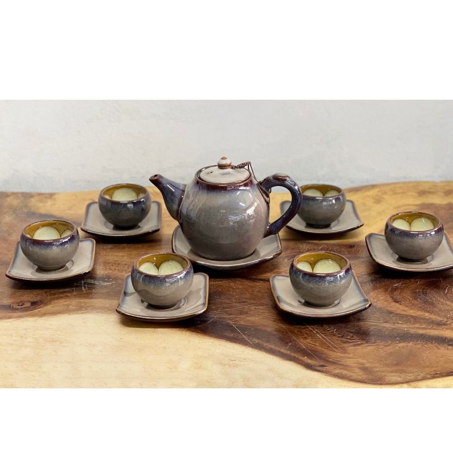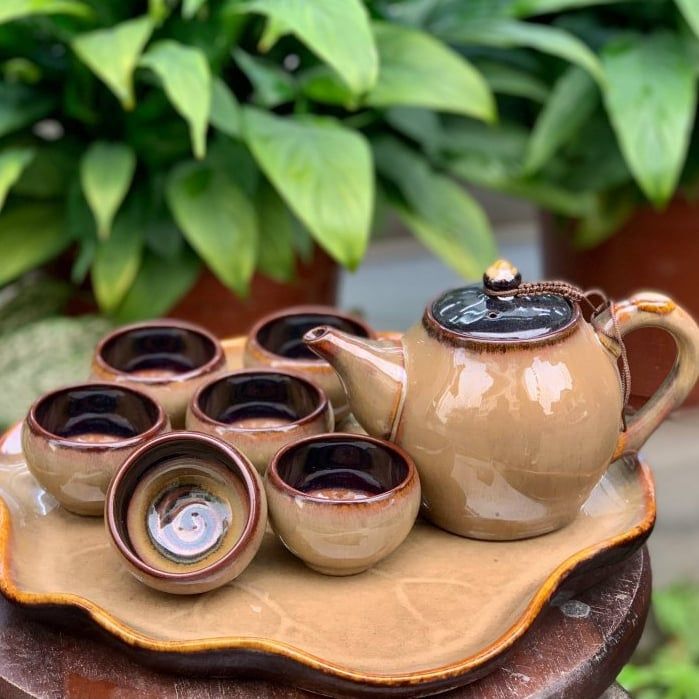 Bộ ấm chén men hỏa biến dáng quả bầu