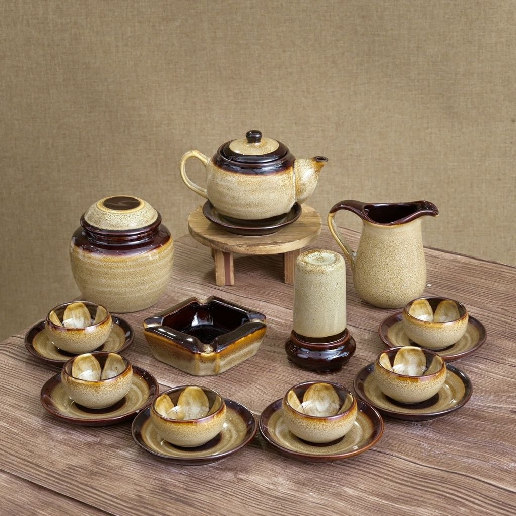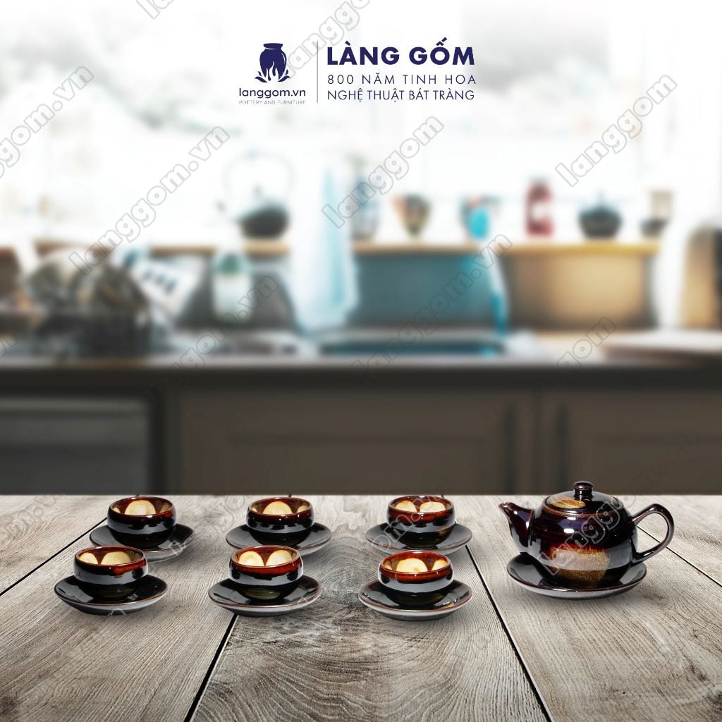 Bộ ấm chén men hỏa biến dáng quả đào