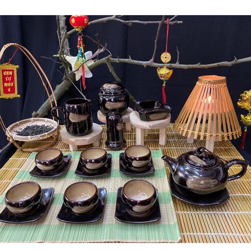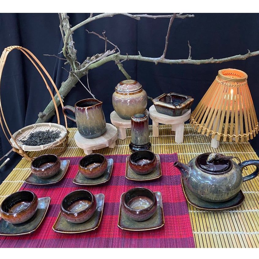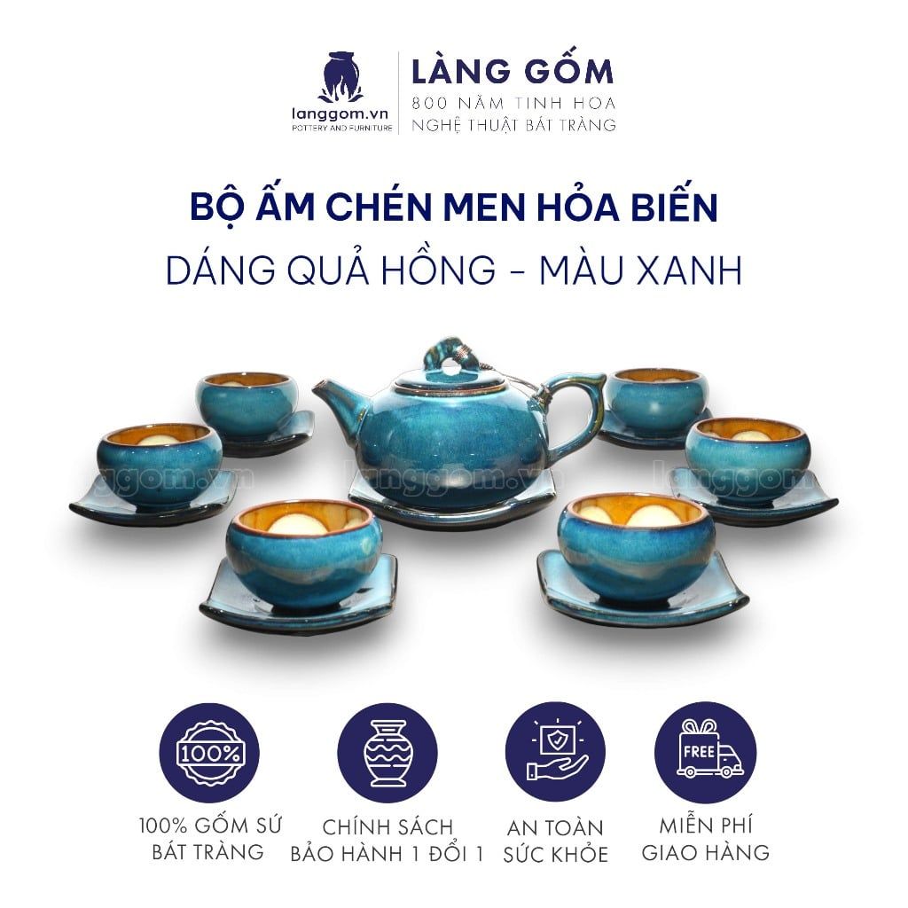 Bộ ấm chén men hỏa biến dáng Quả hồng