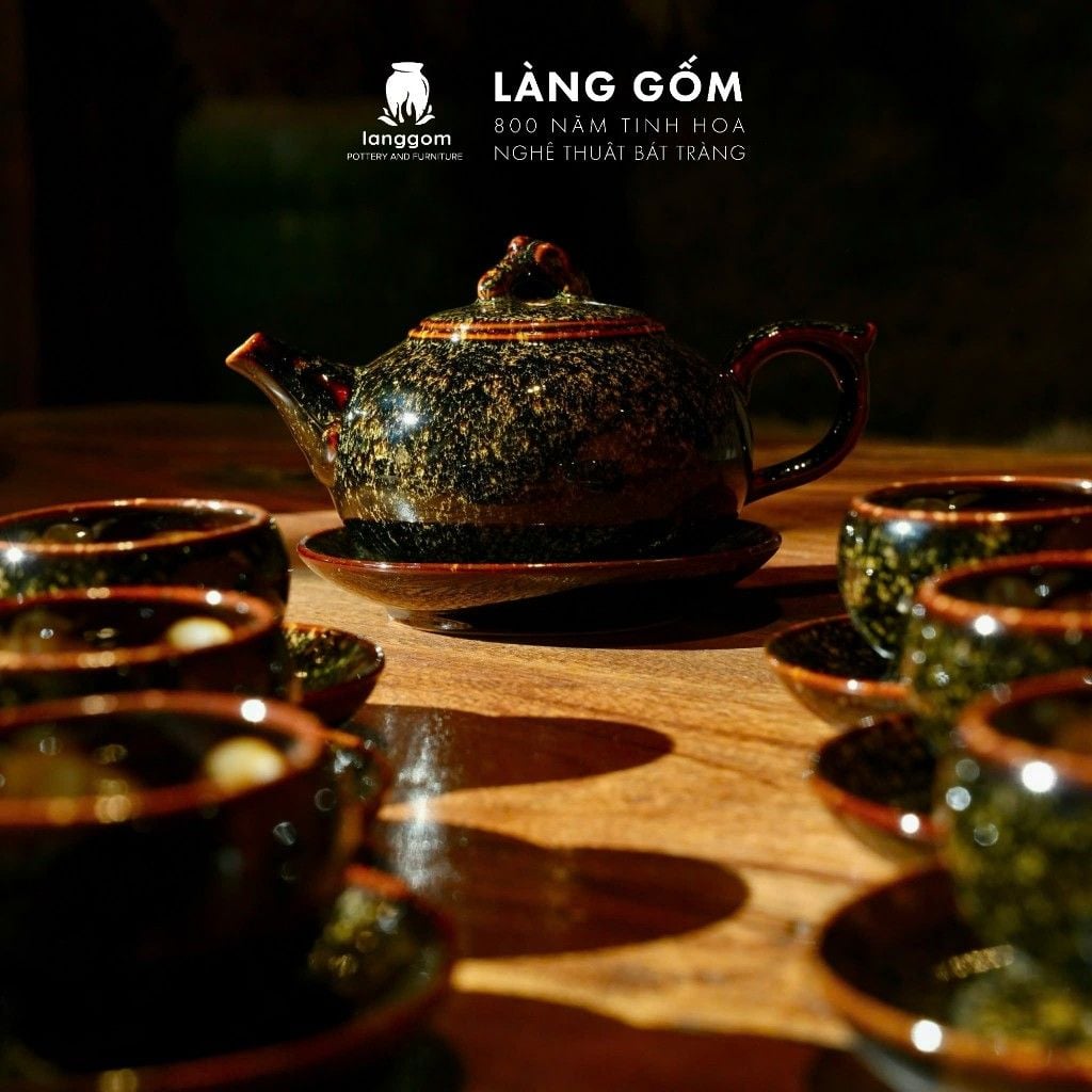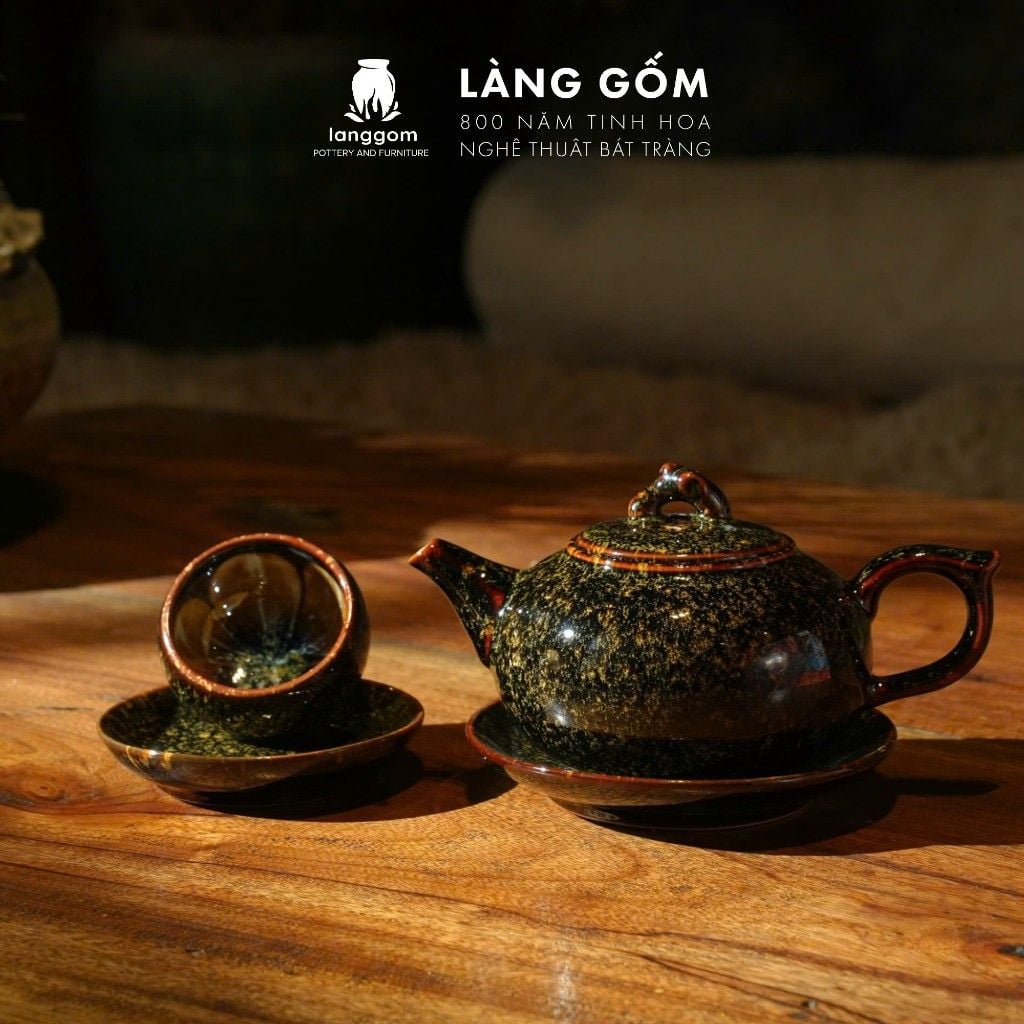 [SẢN PHẨM TẾT 2026] Bộ ấm chén uống trà men hỏa biến màu hoàng kim sa