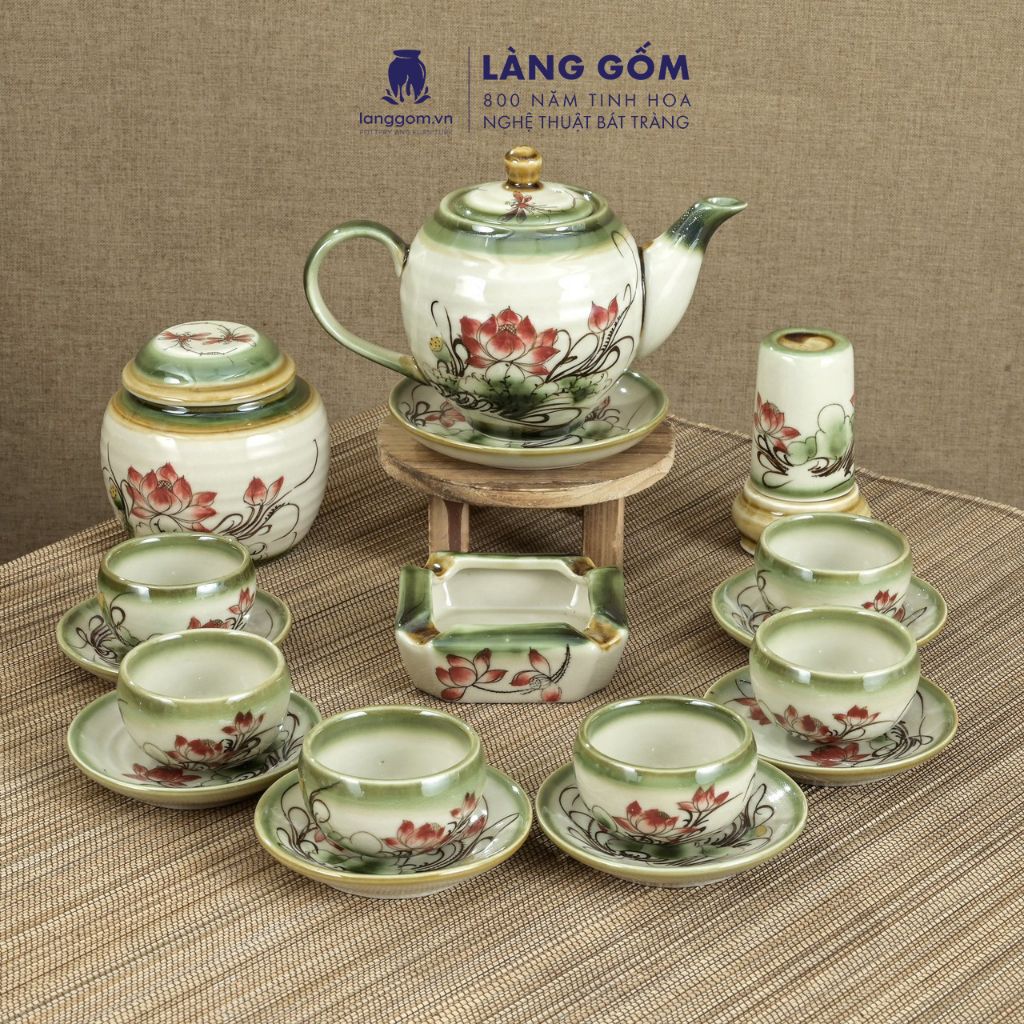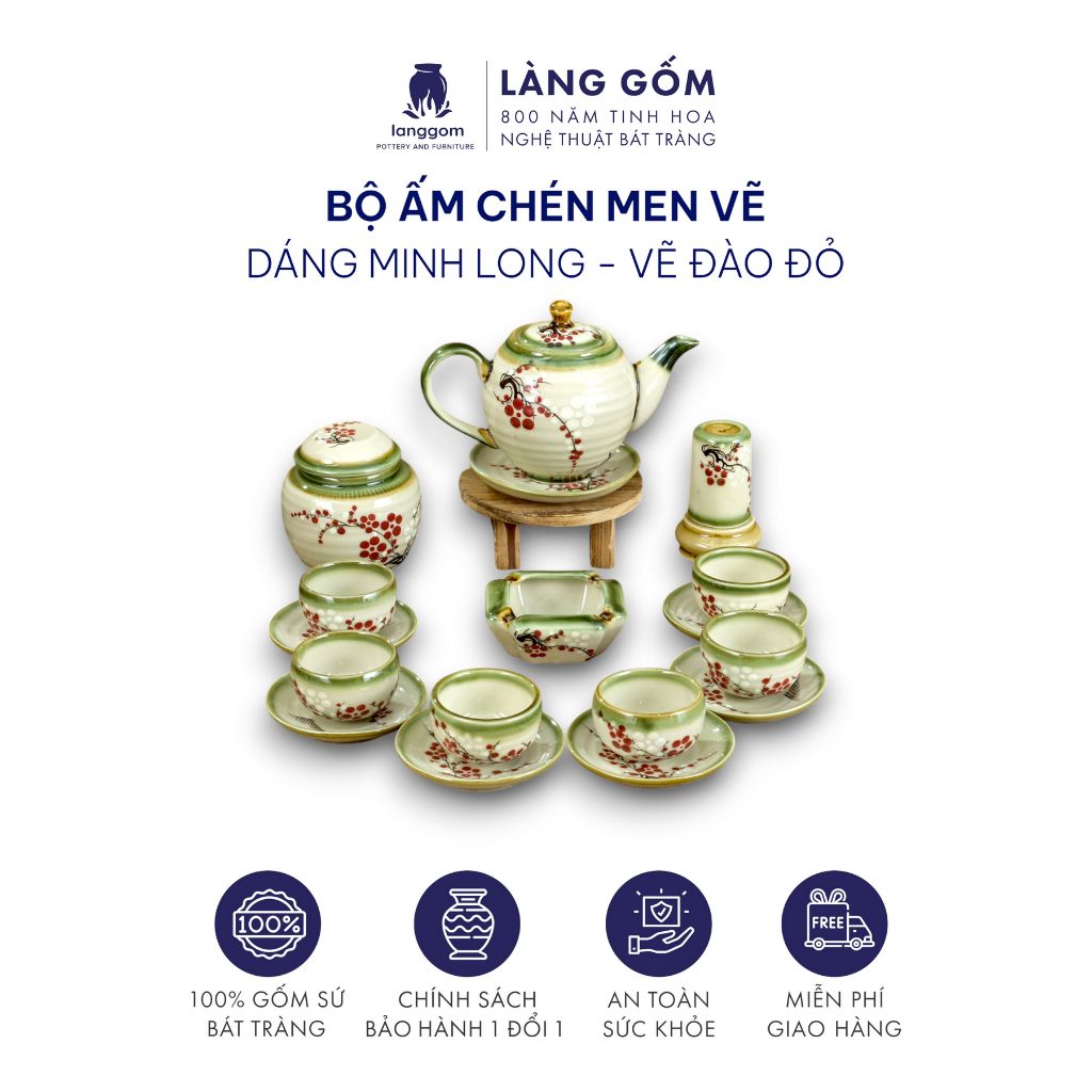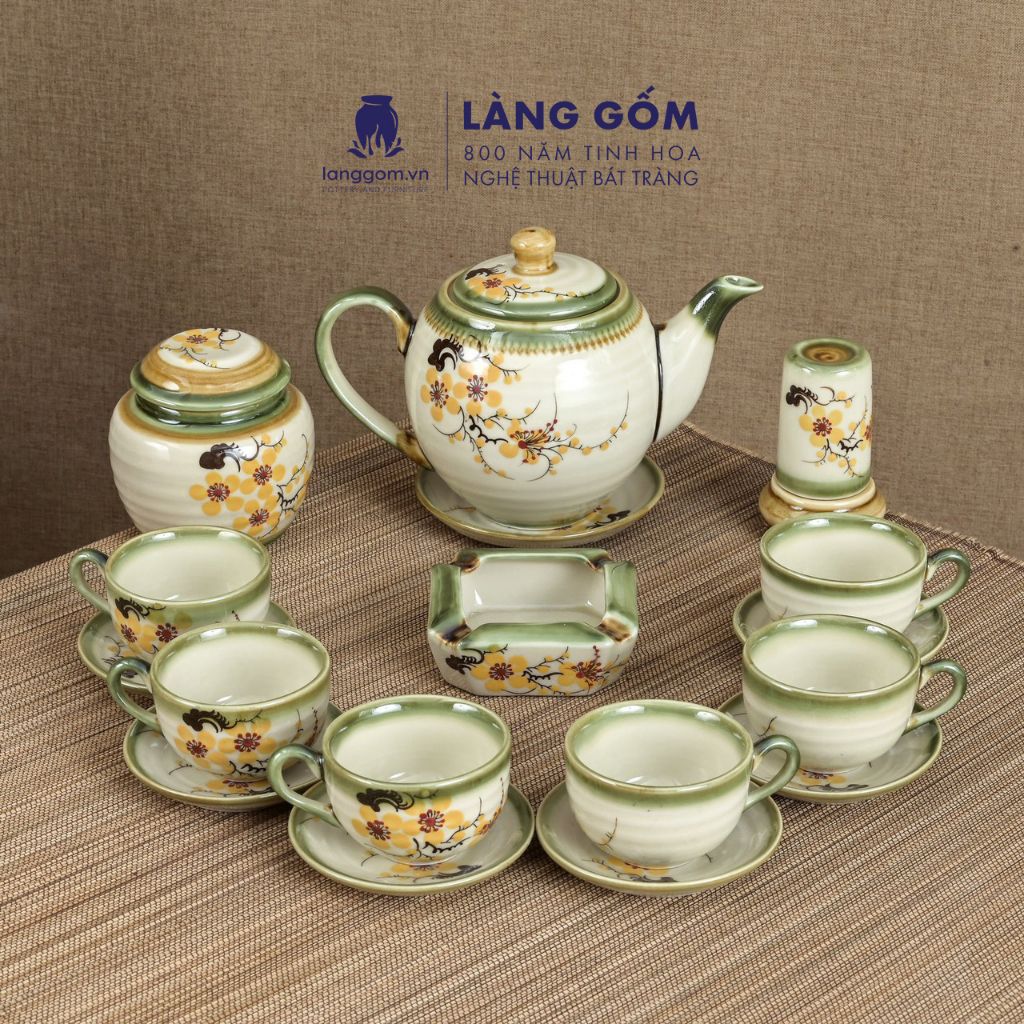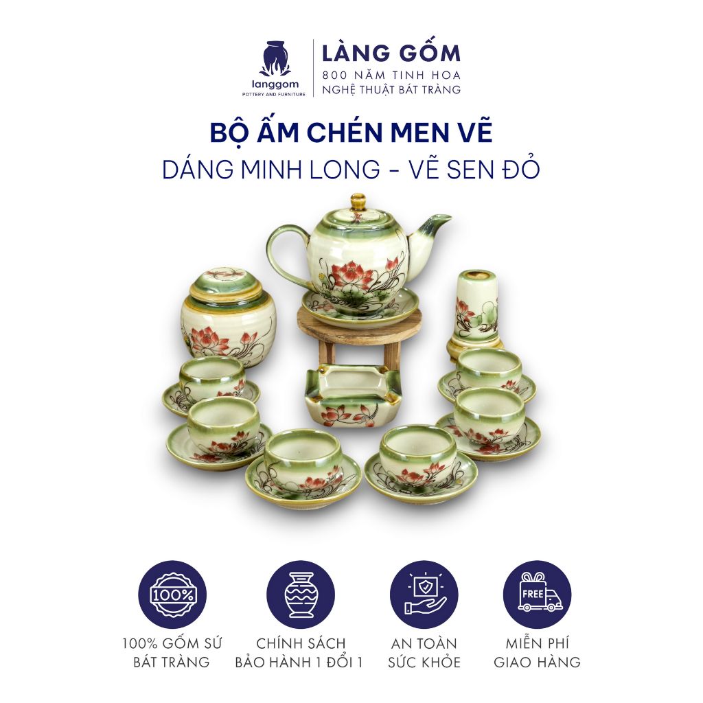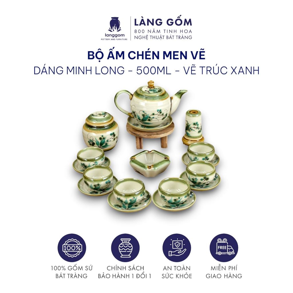 Bộ ấm chén dáng Minh Long hoạ tiết vẽ tay