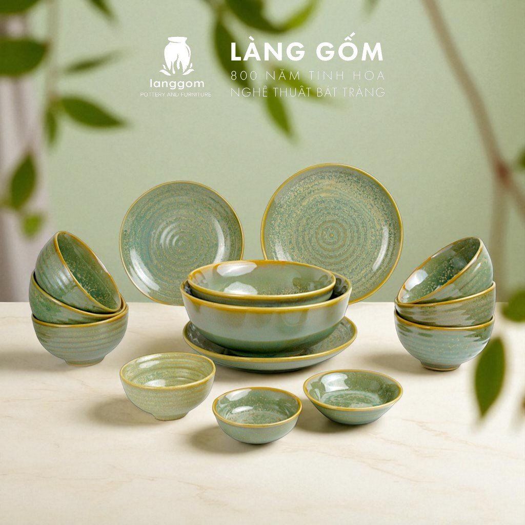 Bộ bàn ăn gia đình men hỏa biến - Màu hoa sương matcha