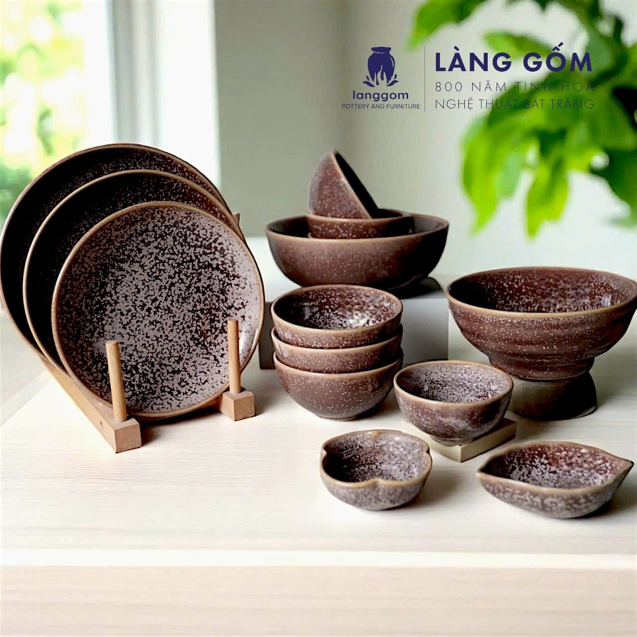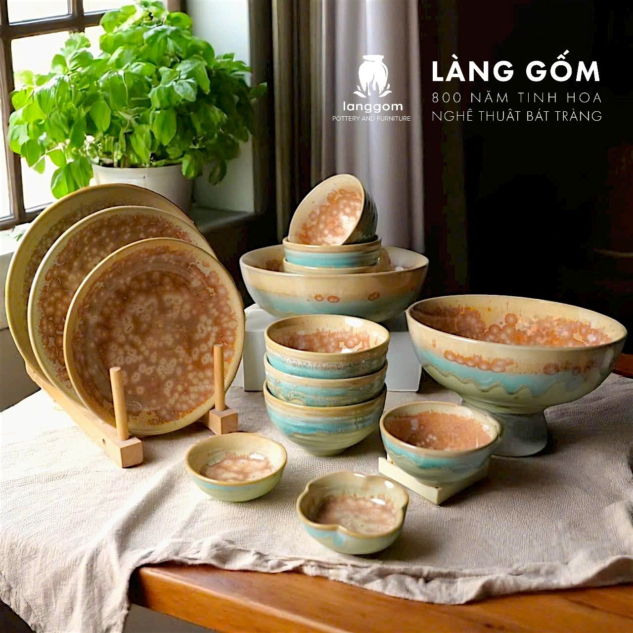 Bộ bàn ăn men hoả biến Bát Tràng