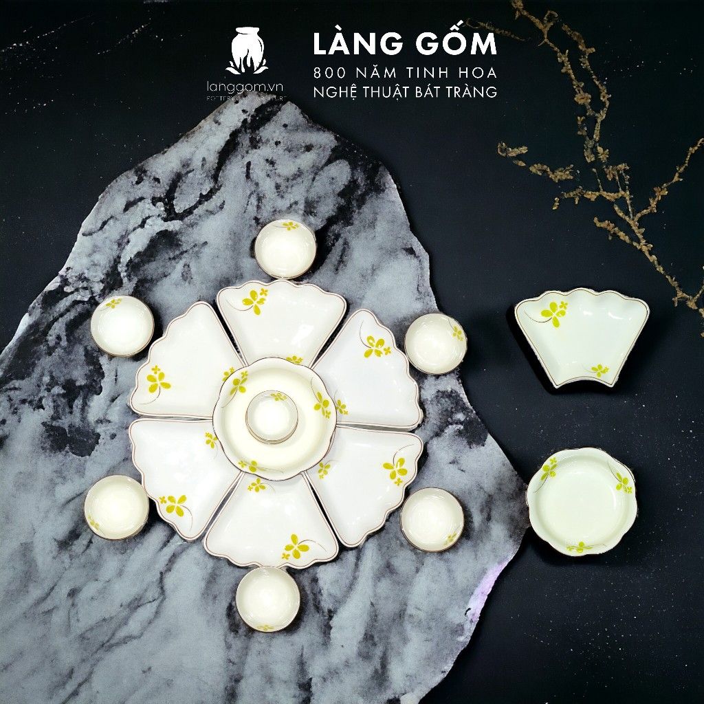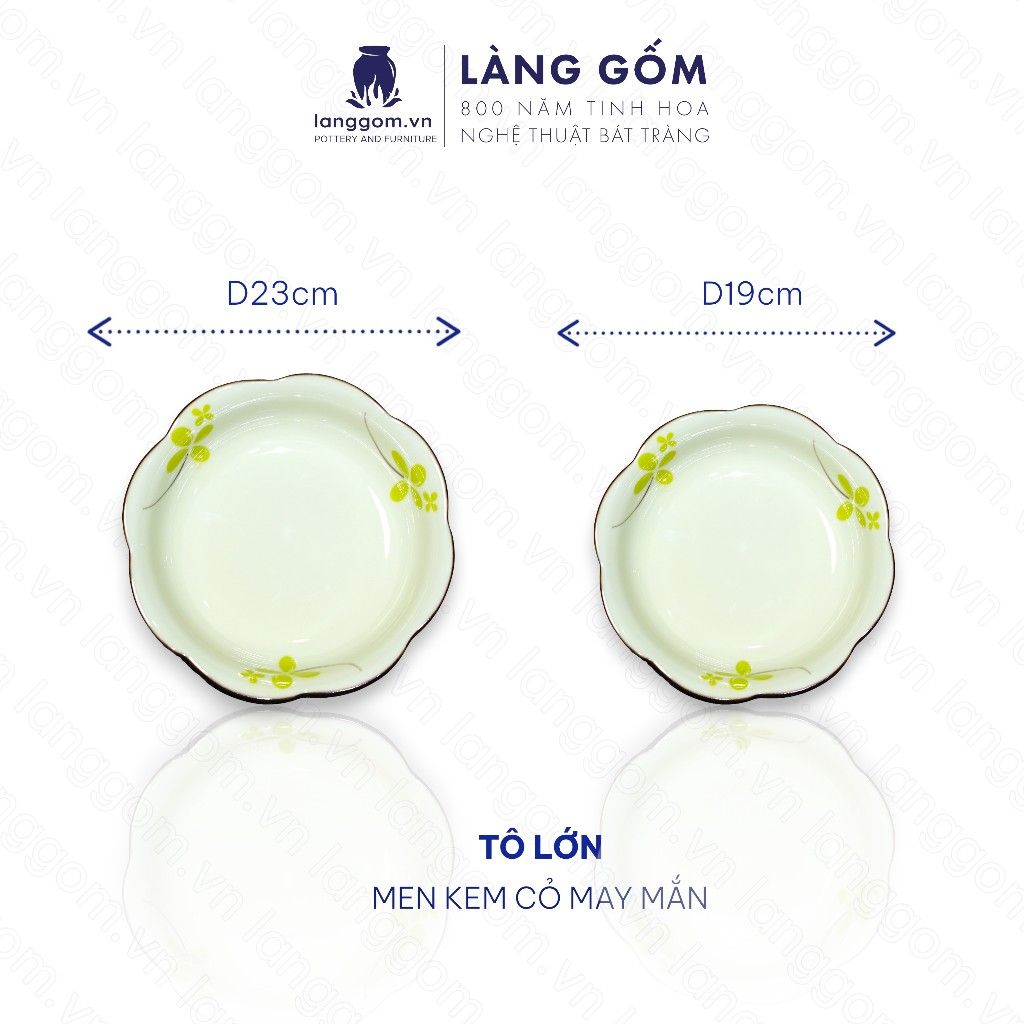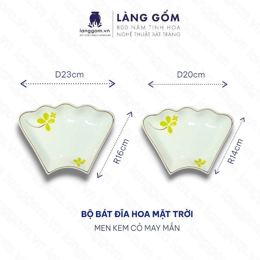Bộ bát đĩa hoa mặt trời men kem vẽ cỏ may mắn