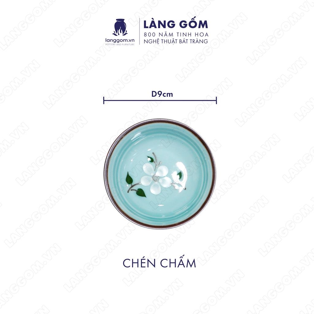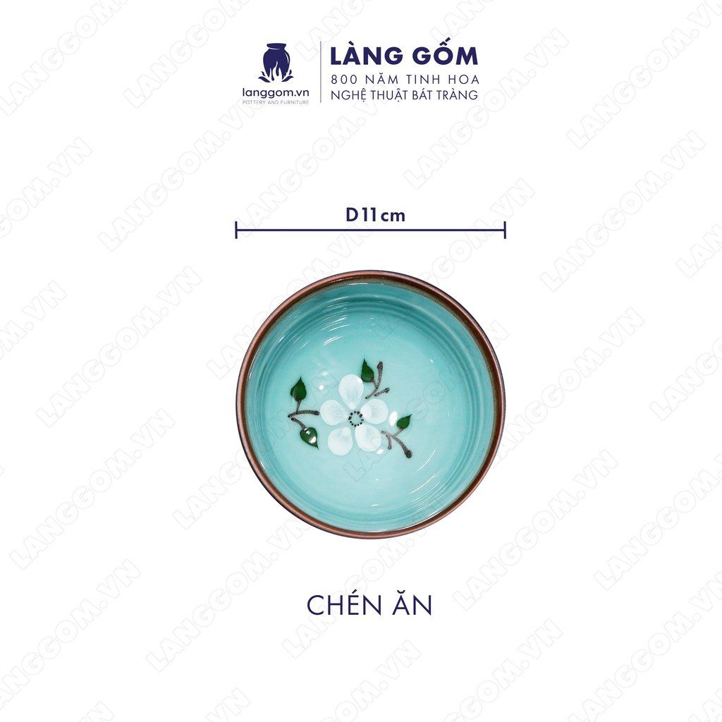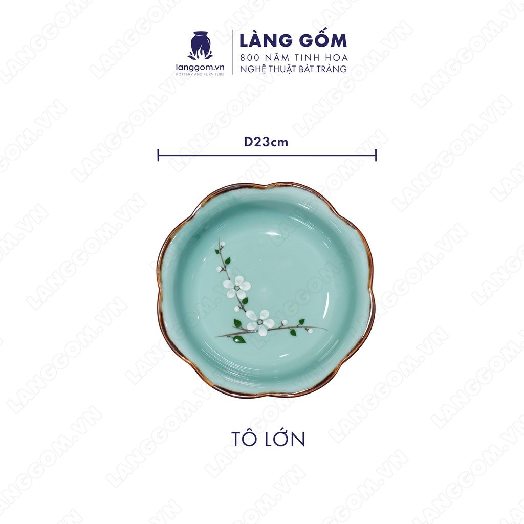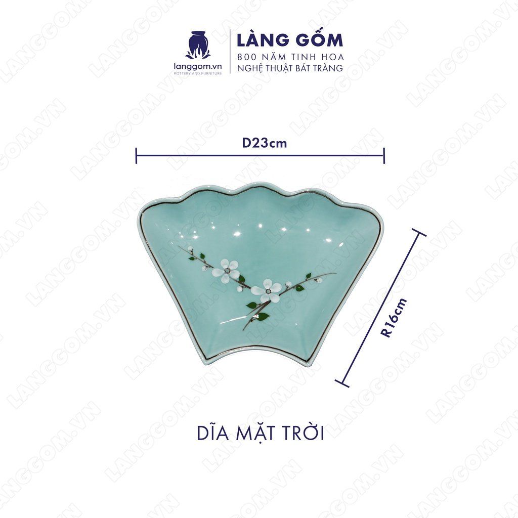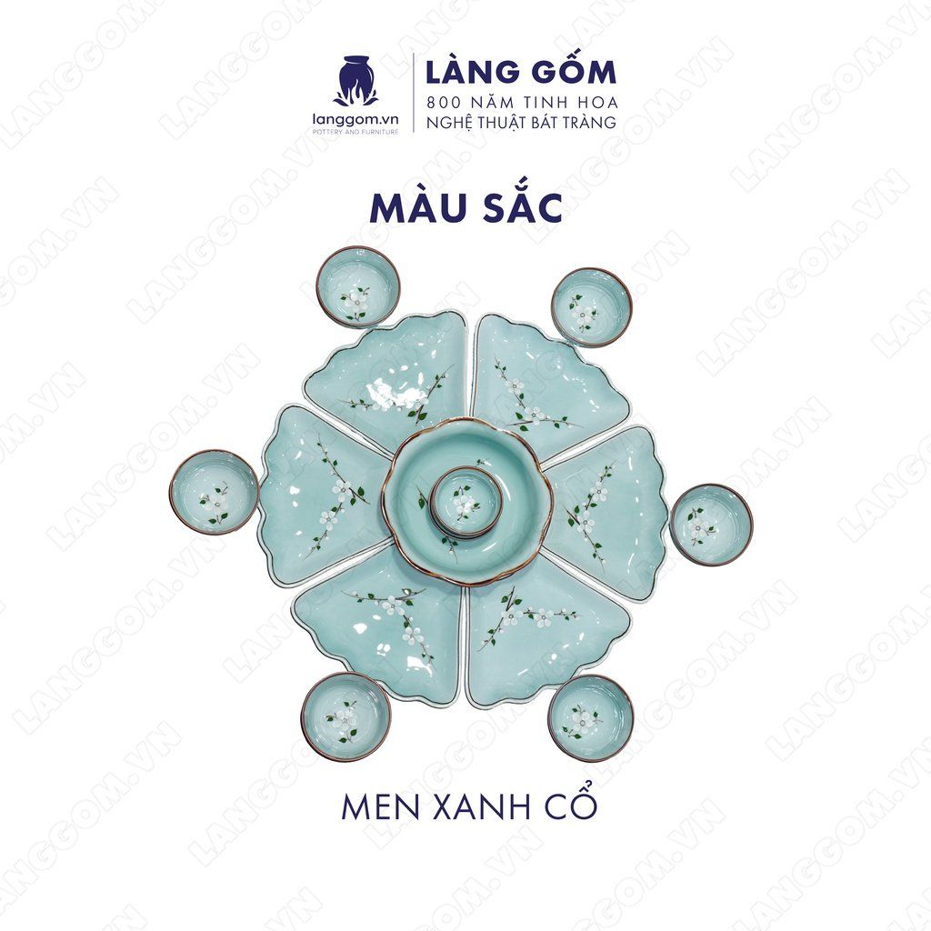 Bộ bát đĩa hoa mặt trời men xanh cổ hoa đào trắng