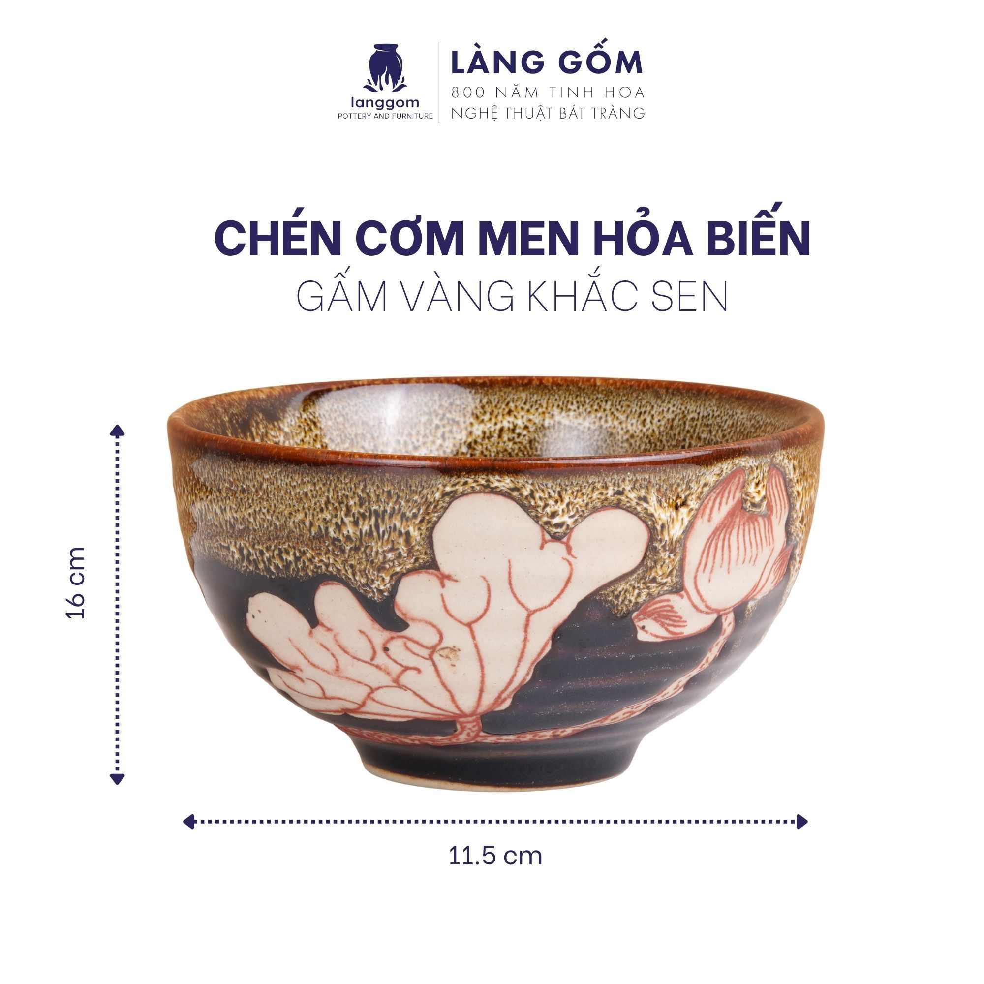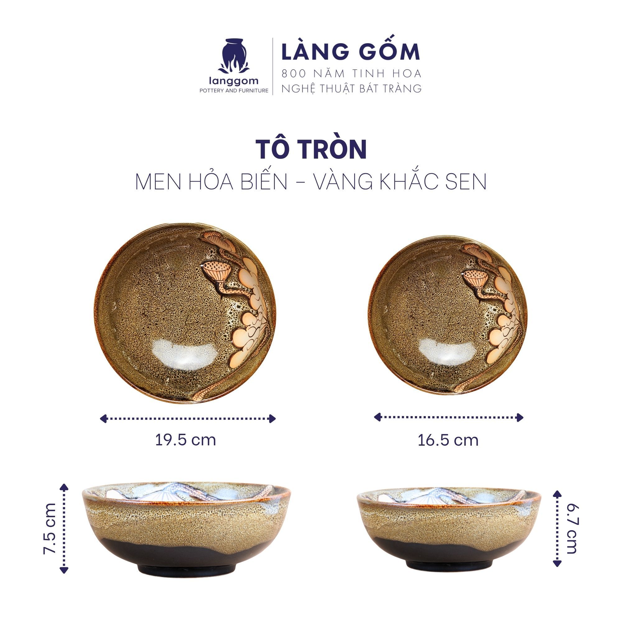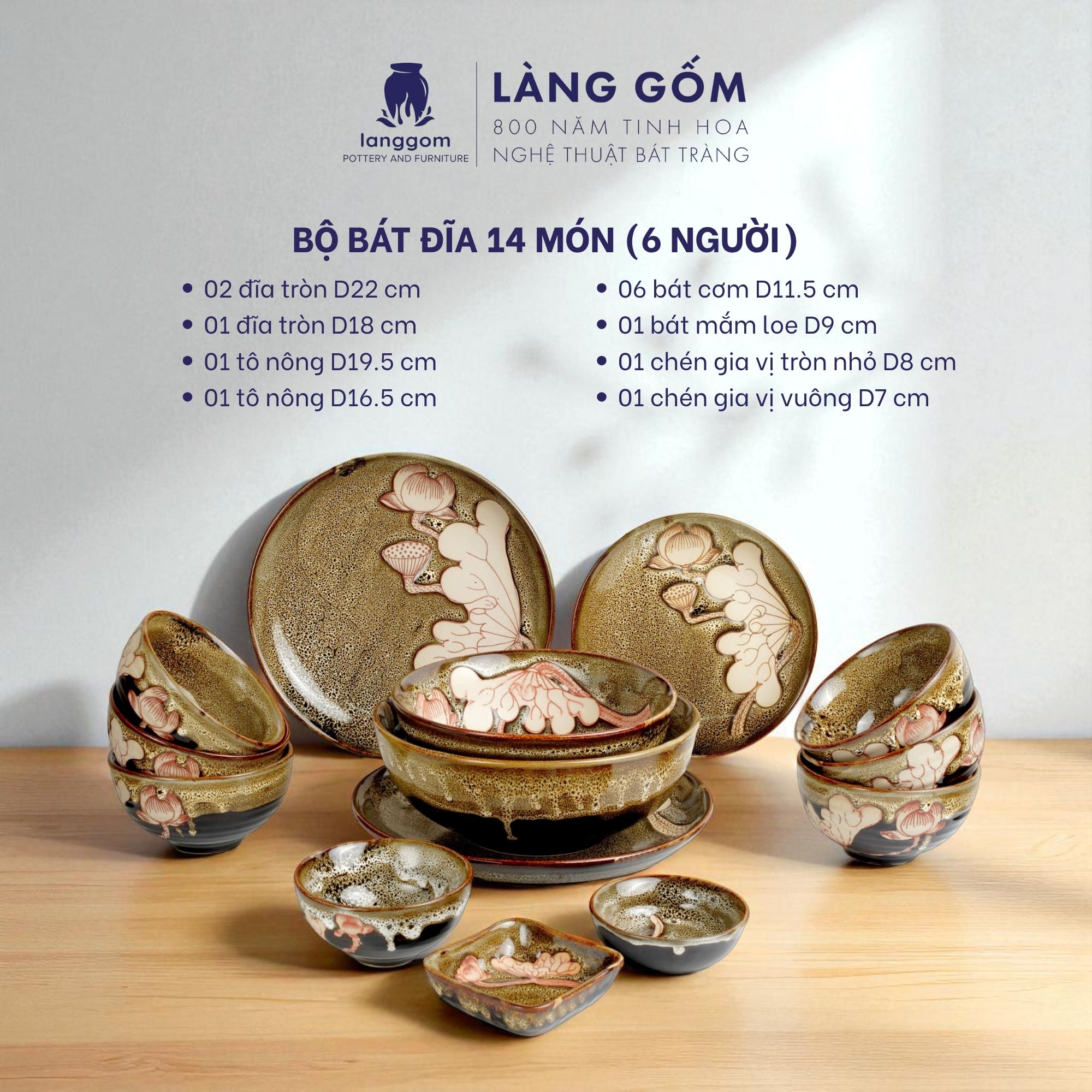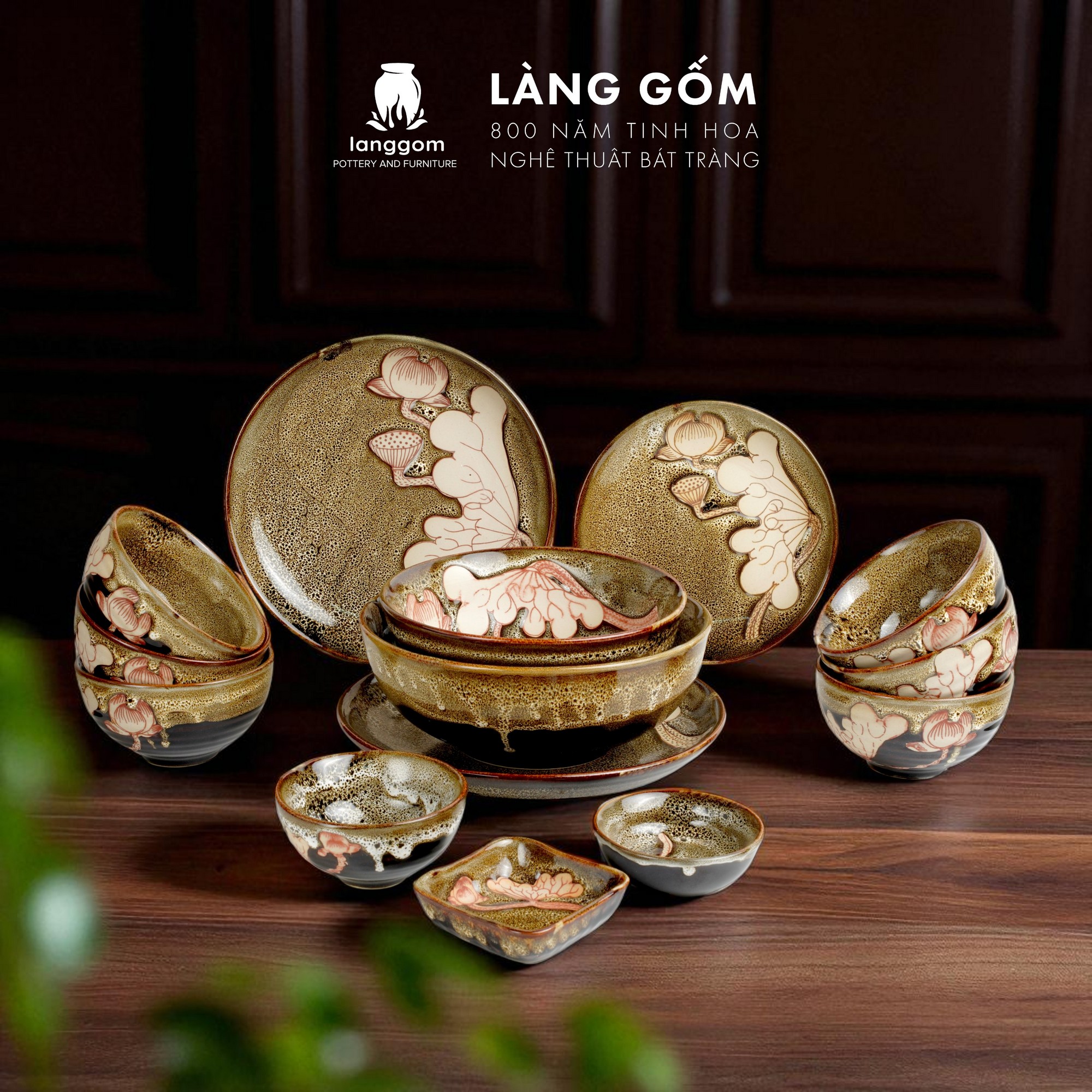 Bộ bàn ăn men hoả biến - Màu gấm vàng khắc sen