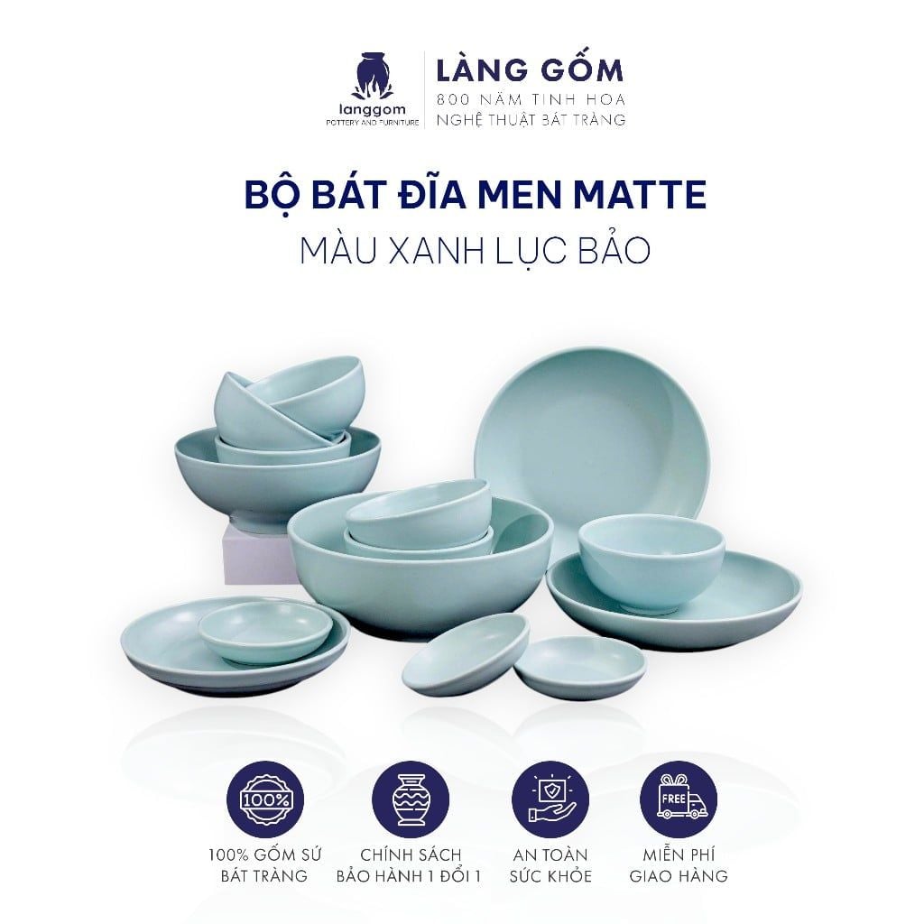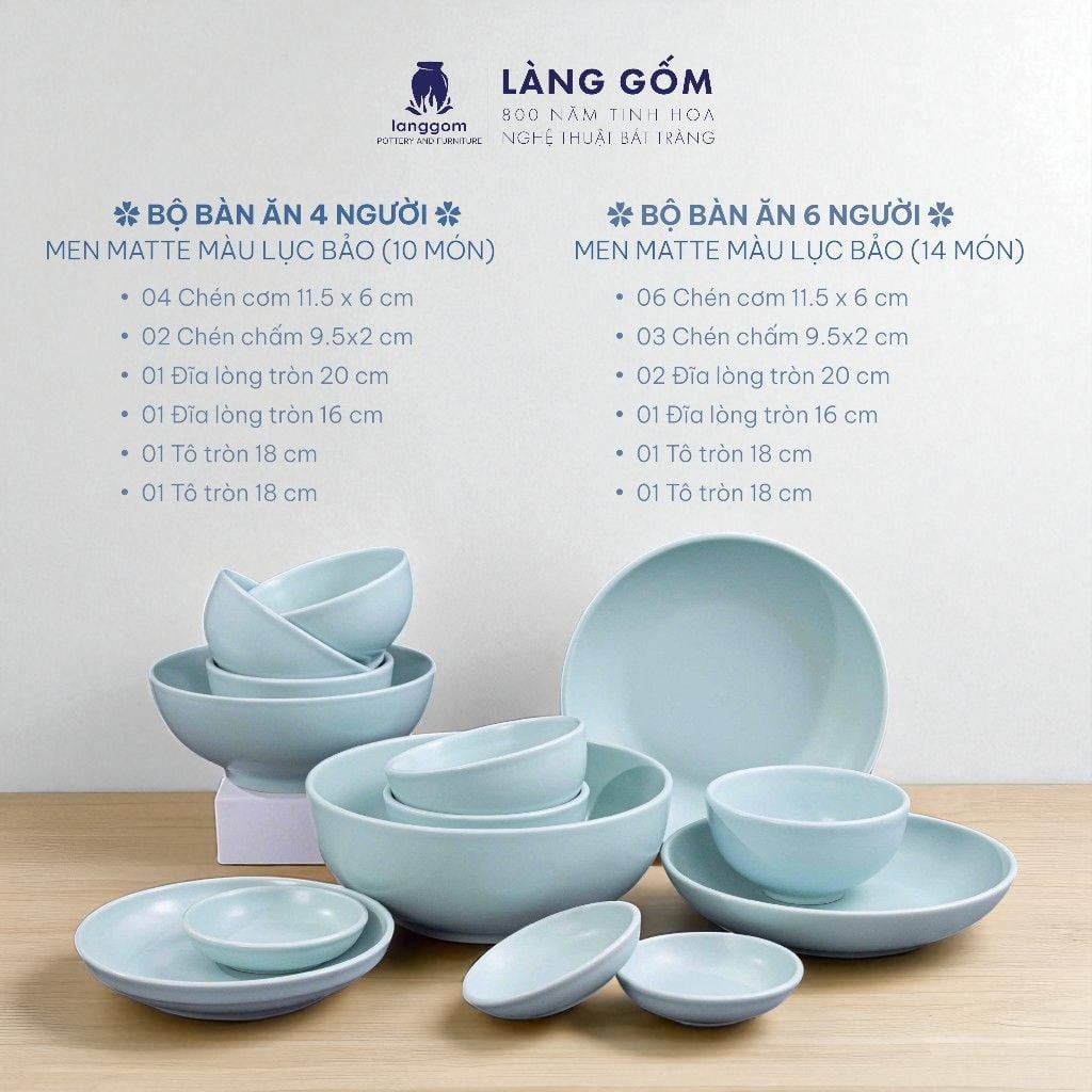 Bộ bàn ăn men matte - Màu xanh ngọc