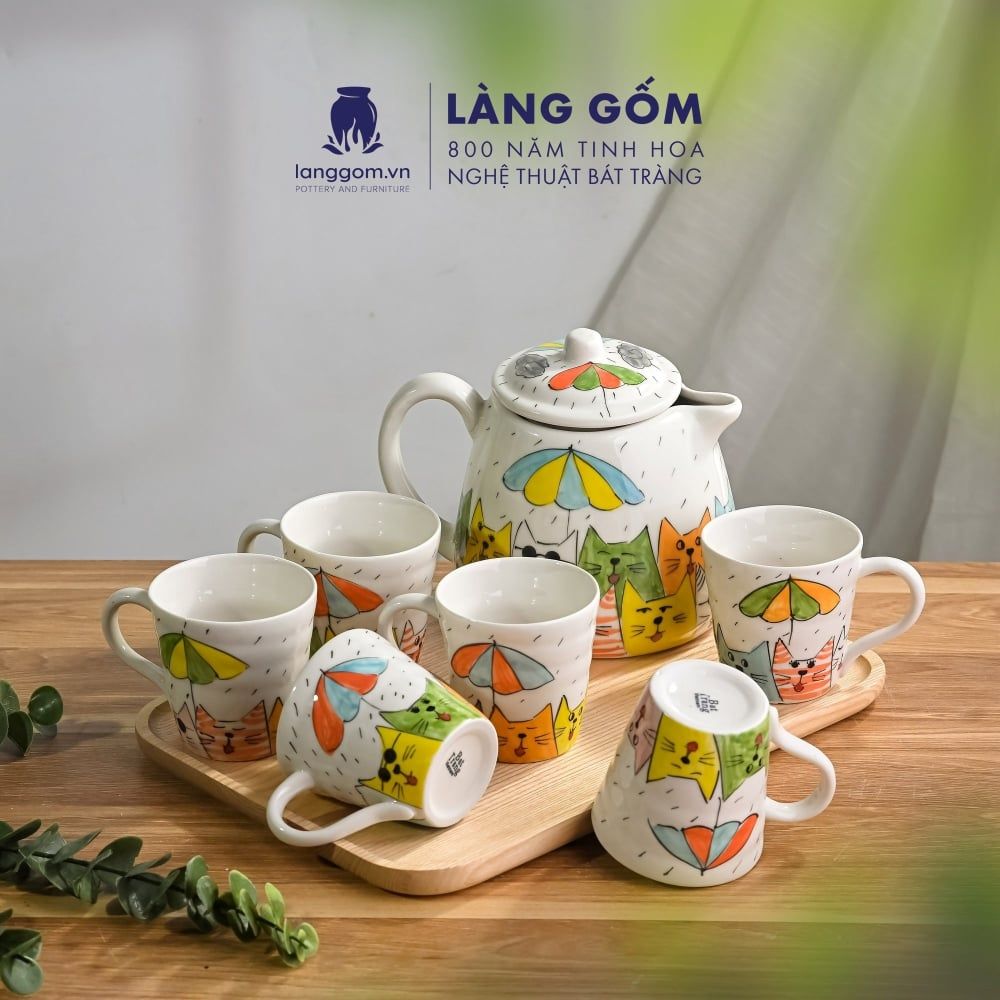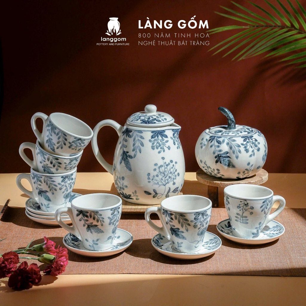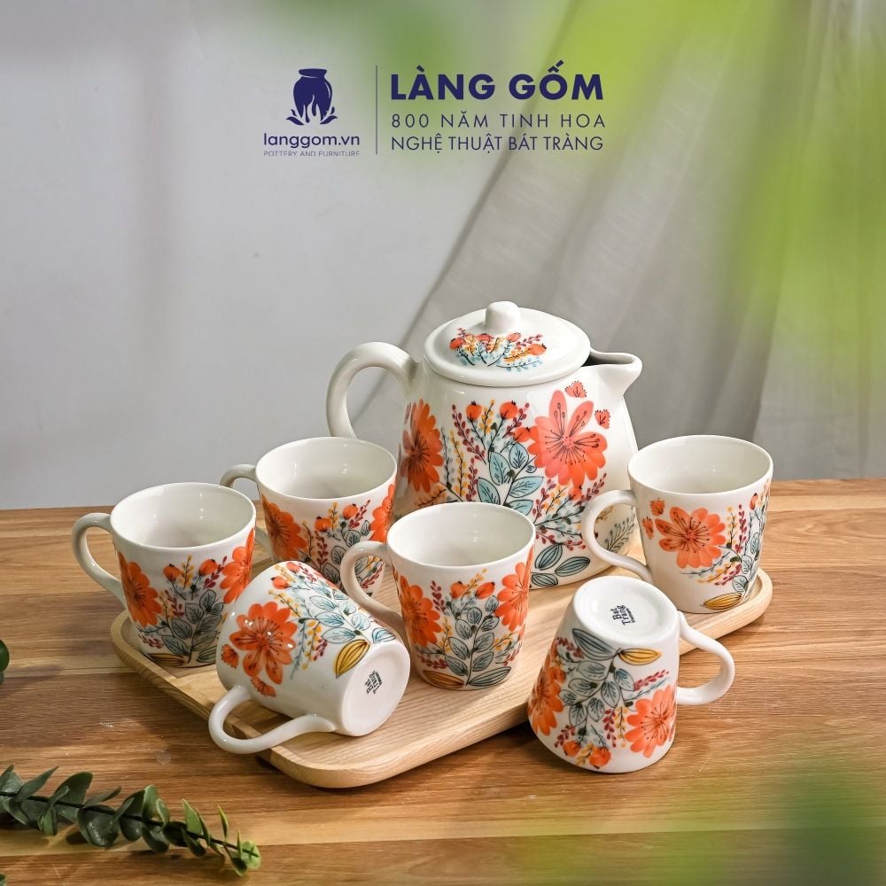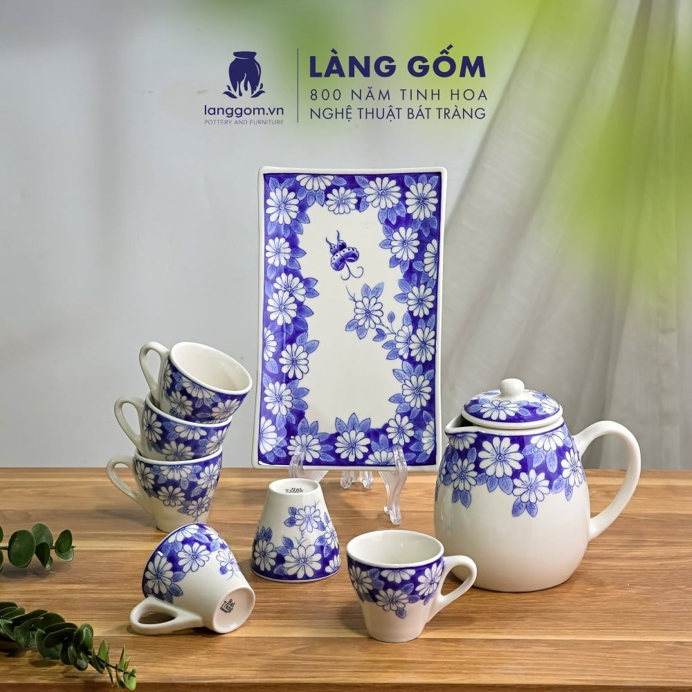 Bộ bình nước gốm sứ Bát Tràng cao cấp họa tiết vẽ tay