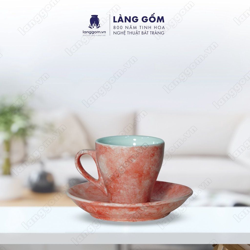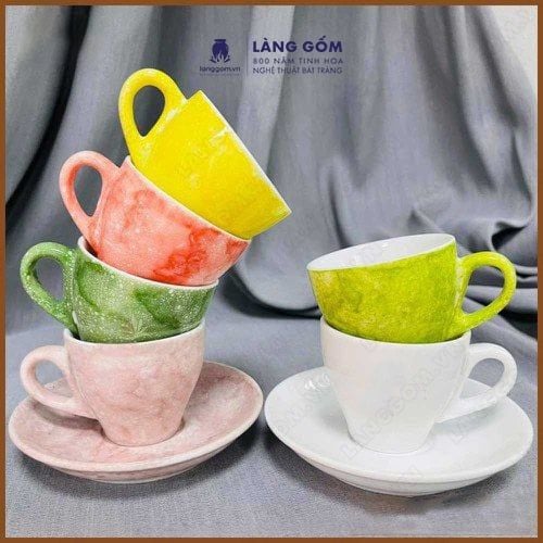 Bộ cốc đĩa cà phê Espresso màu vân đá, uống trà, cà phê, dung tích 70ml