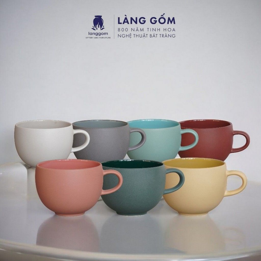 Bộ cốc đĩa có quai kiểu Mohem dáng tròn men mờ dáng basic nhiều màu